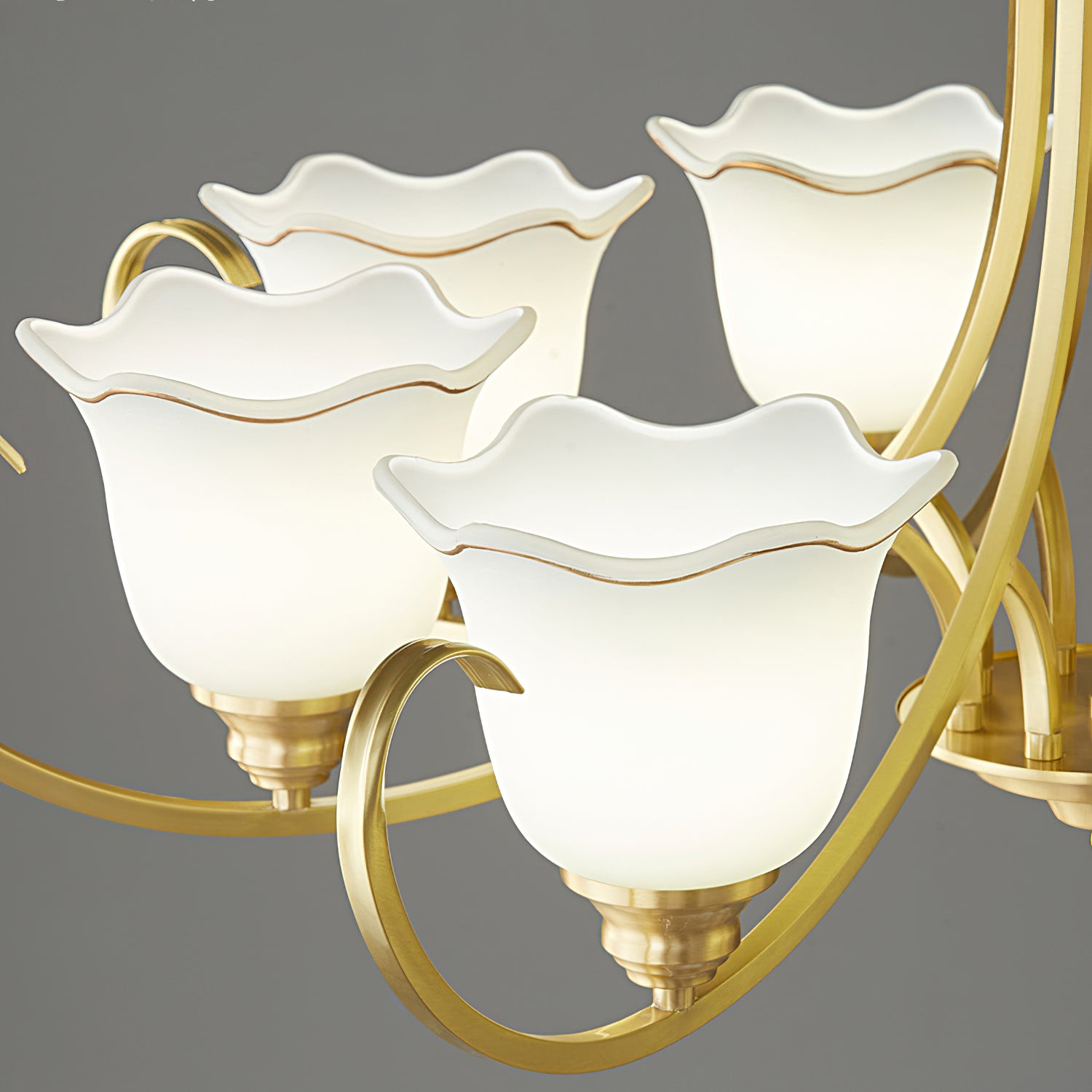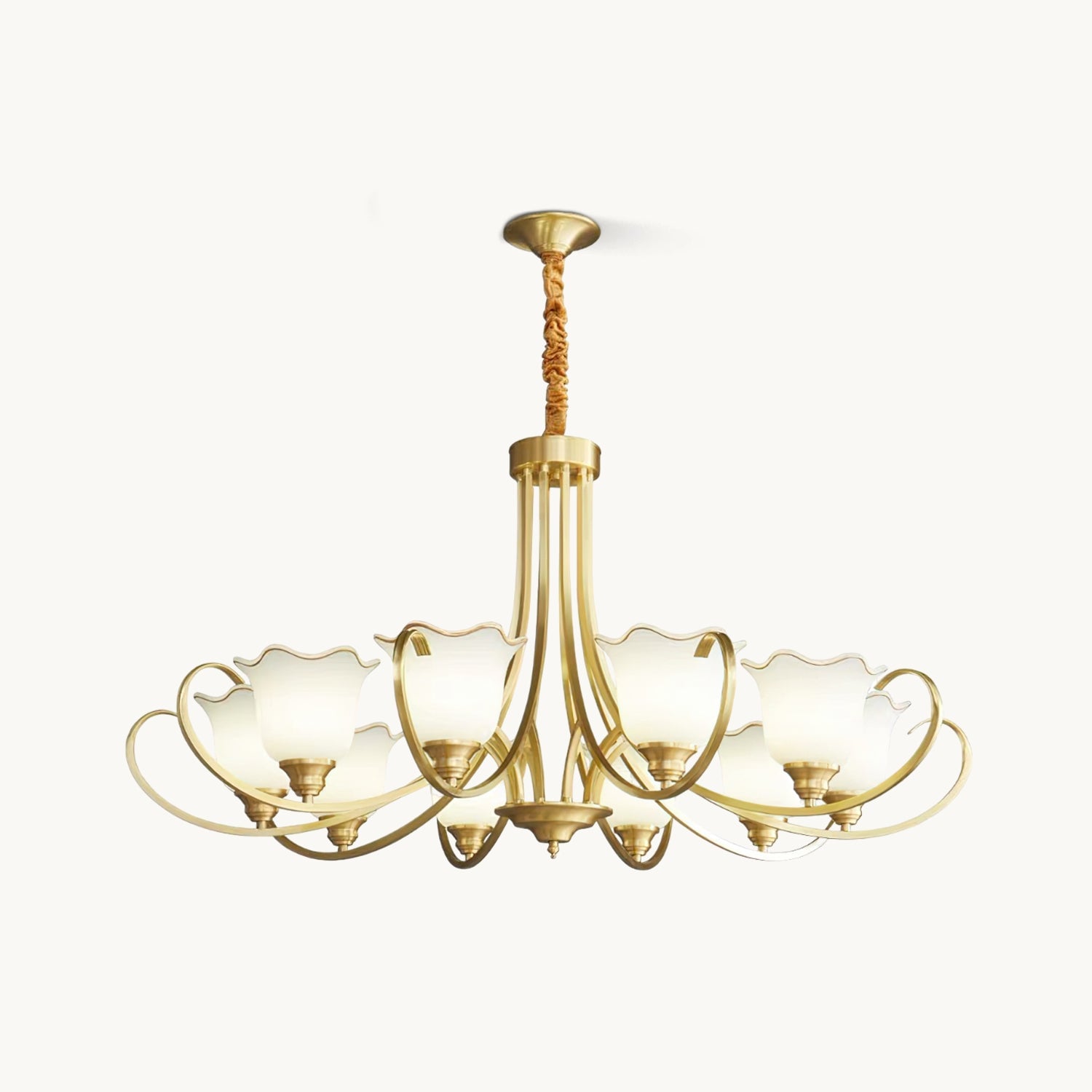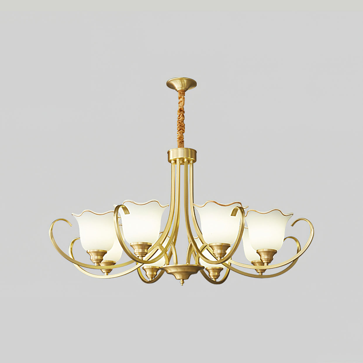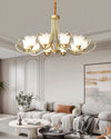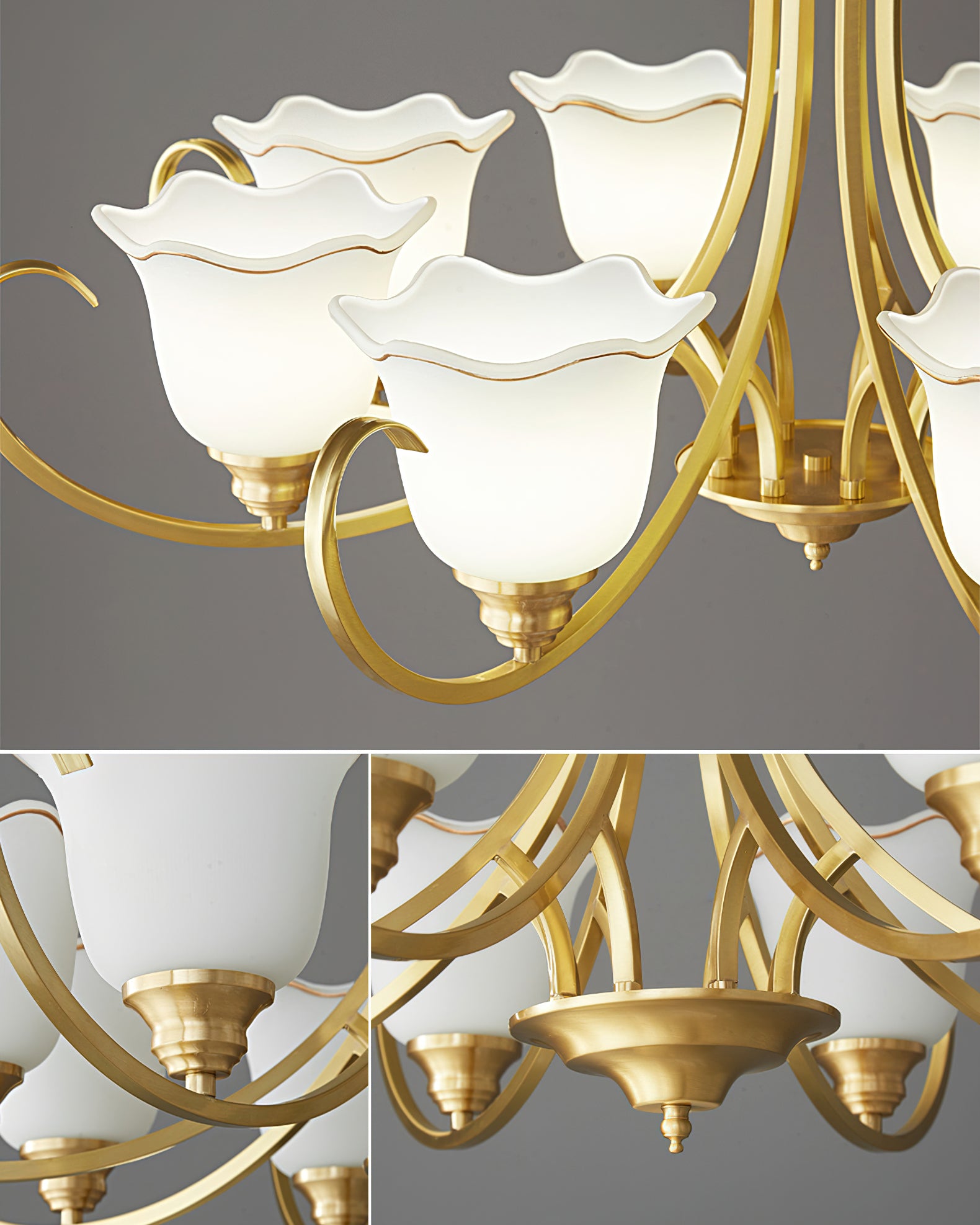 Bring a touch of elegance to your living room with our Blooming Flower Glass Chandelier. This American-style chandelier features a sleek glass shade and brass body that will add a modern and sophisticated touch to your living room. Bring the beauty of nature into your home with this stunning piece.