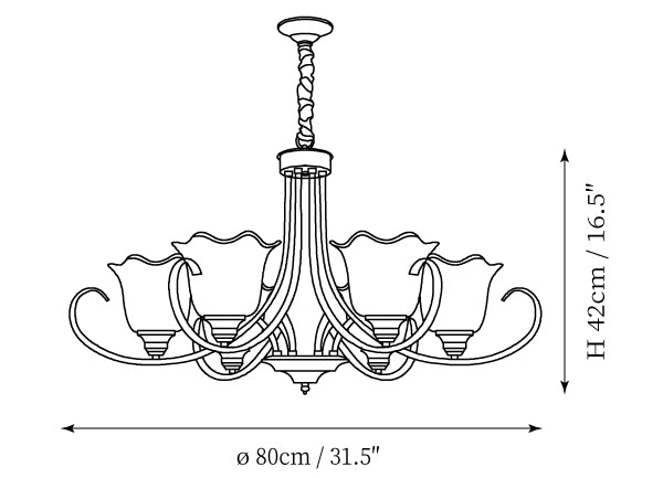 - 6 Heads Size: Dia 80cm x H 42cm / ∅ 31.5″ x H 16.5"