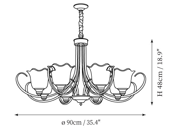 - 8 Heads Size: Dia 90cm x H 48cm / ∅ 35.4″ x H 18.9"