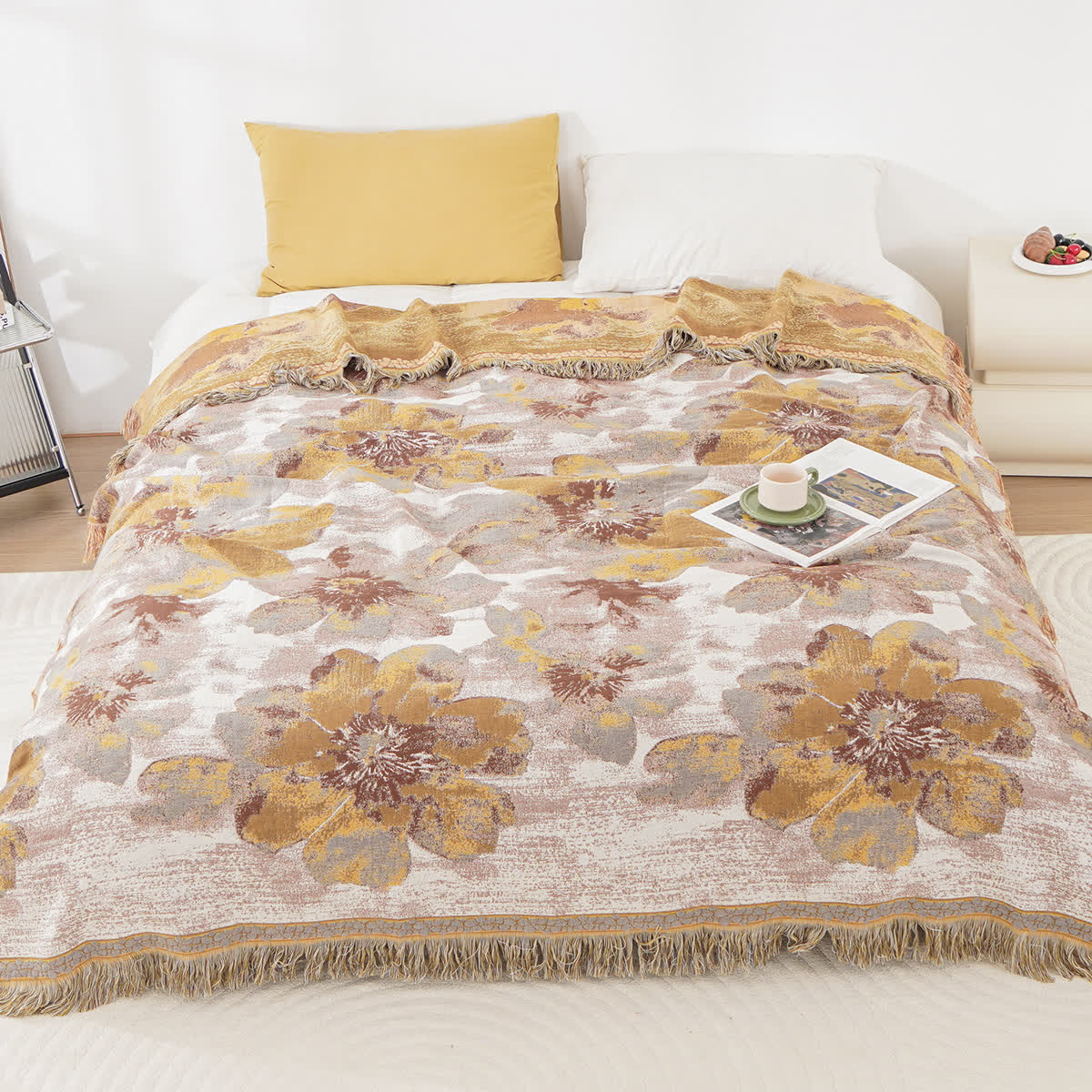 Crafted from premium cotton gauze, this quilt is lightweight, breathable, and exceptionally soft to the touch. It offers comfort without the heaviness, making it ideal for use throughout the year. The vibrant floral patterns infuse your space with a fresh, lively ambiance, creating a cheerful and welcoming atmosphere in any bedroom, guest room, or living area.