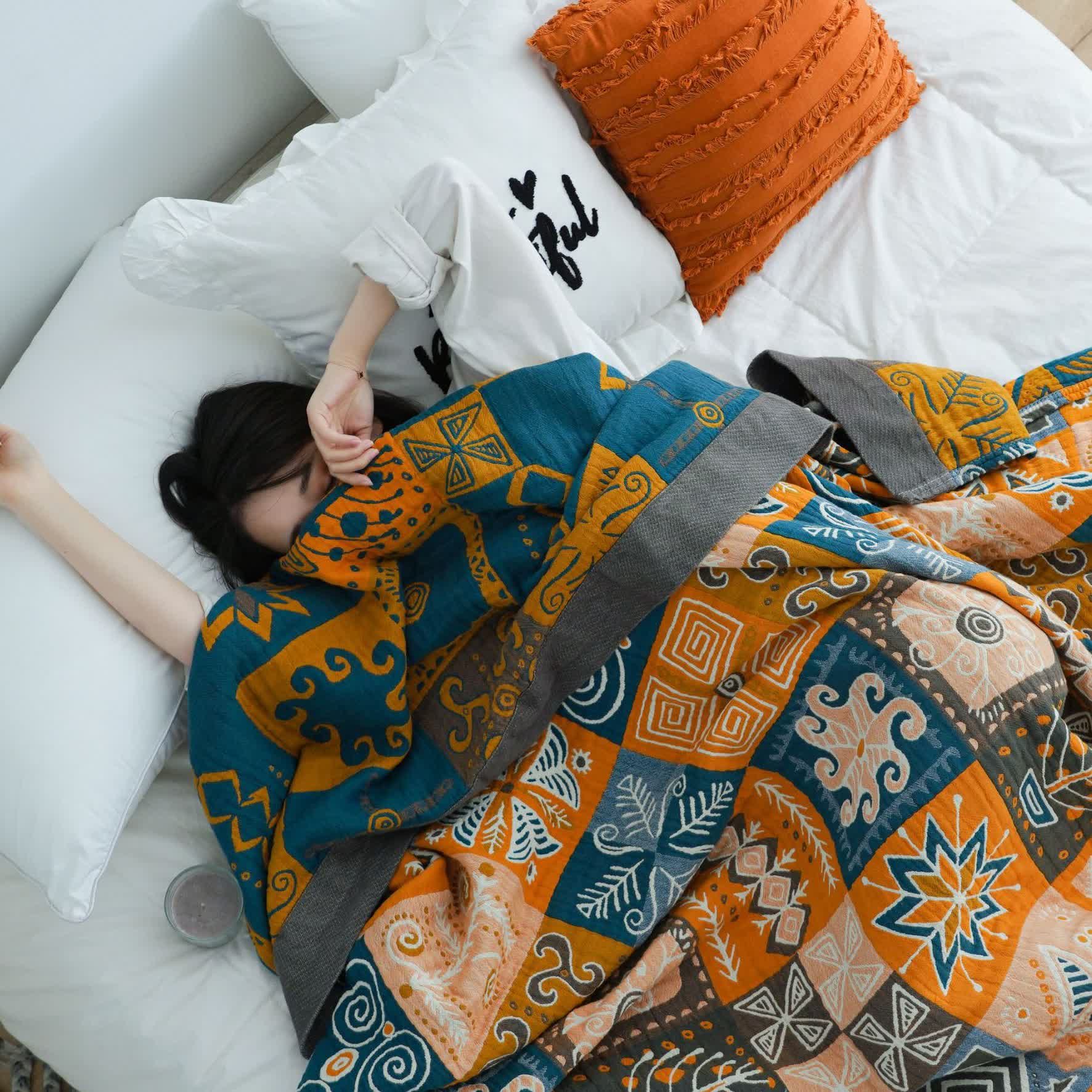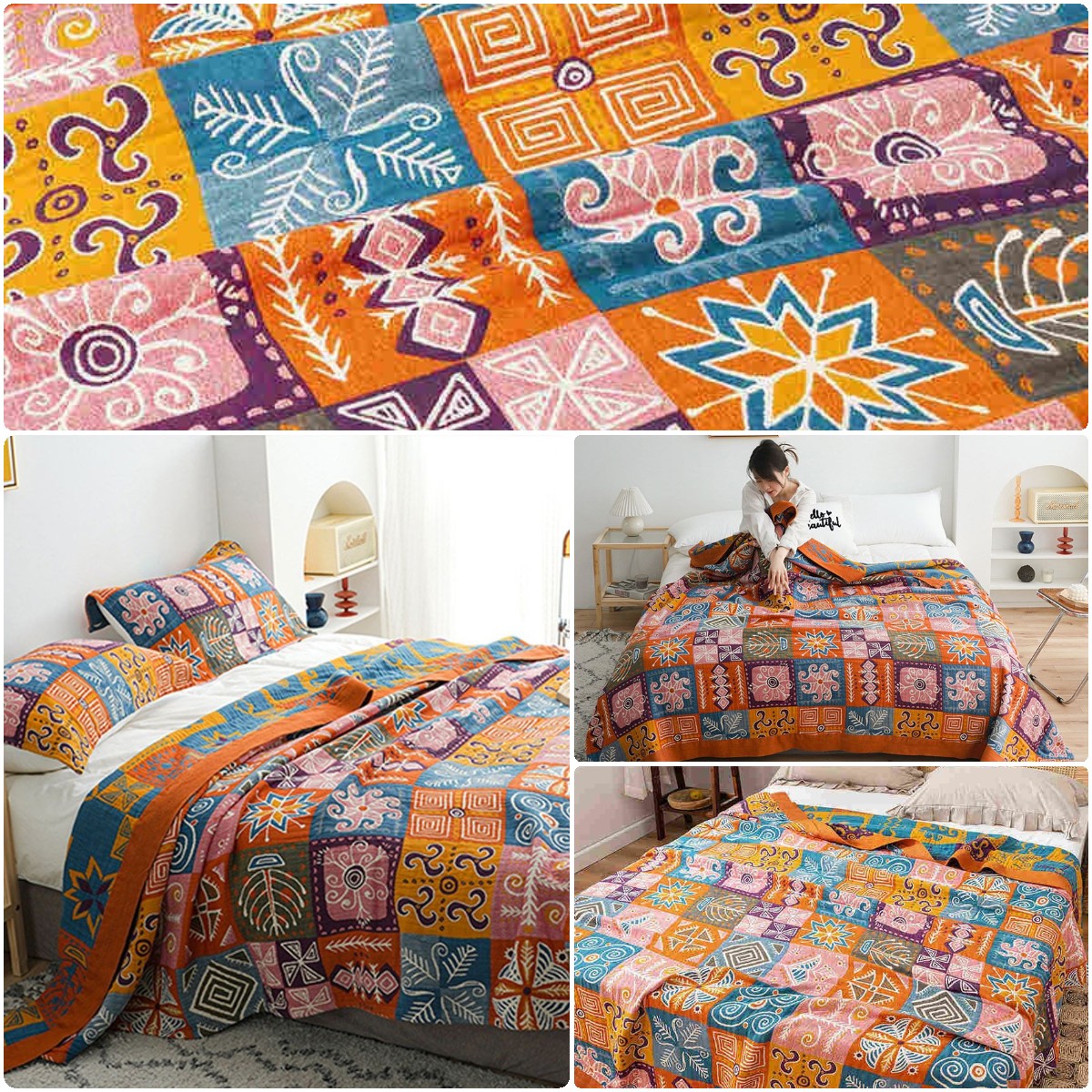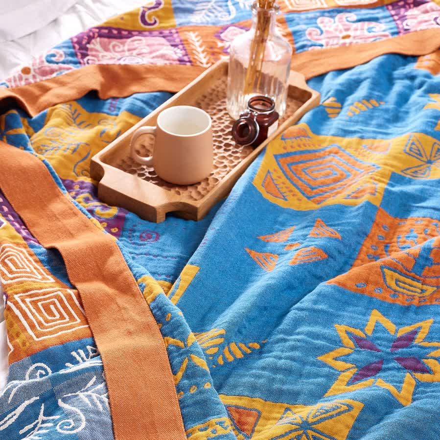 Made from buttery-soft organic cotton, our summer quilt is super soft, breathable and cuddly. It not only makes for a great blanket to snuggle up with, but also is a special decorative piece for your bedroom. The featured boho design transforms your bed into a restful retreat. Due to the unique dyeing process, the quilt you receive will vary slightly in color from what's pictured here.
