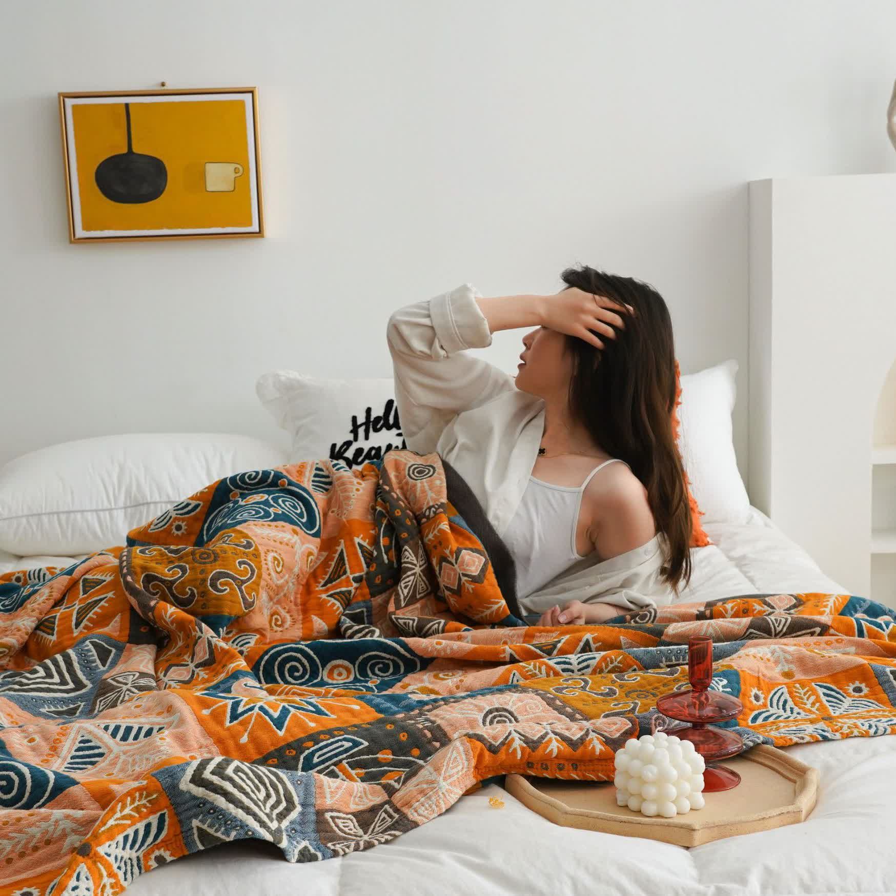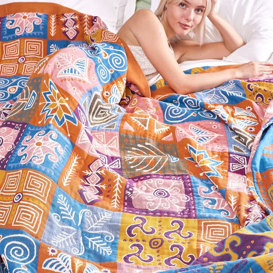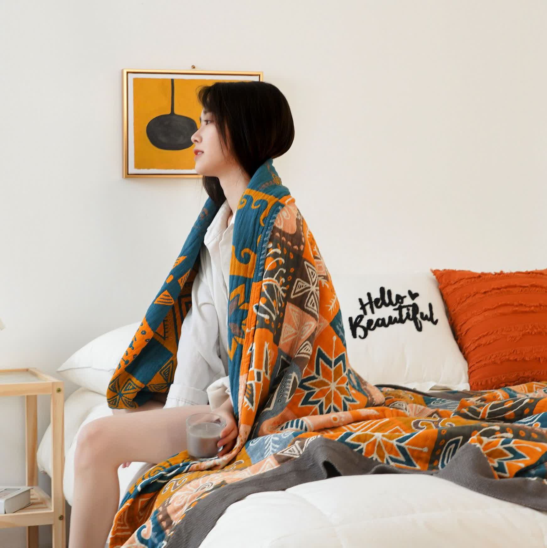 Made from buttery-soft organic cotton, our summer quilt is super soft, breathable and cuddly. It not only makes for a great blanket to snuggle up with, but also is a special decorative piece for your bedroom. The featured boho design transforms your bed into a restful retreat. Due to the unique dyeing process, the quilt you receive will vary slightly in color from what's pictured here.