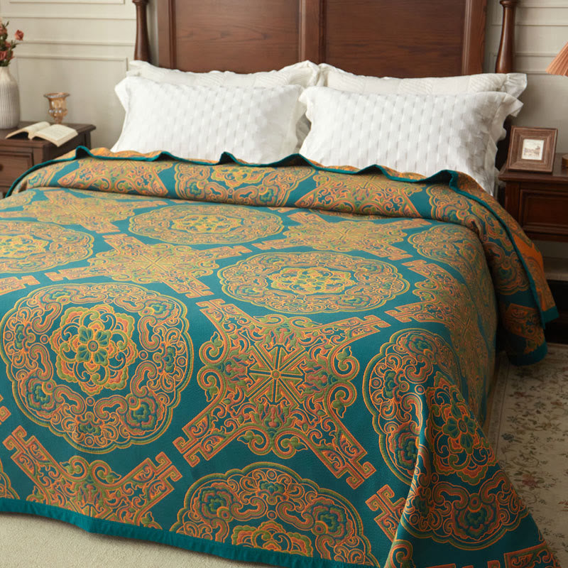 The flower wreath pattern coverlet brightens your room. Made of bamboo fiber material, breathable and sweat-absorbent, soft and comfortable, woven with 60 fine sand. Reversible design, which adds reliable strength for use and washing. Adopted with environmentally friendly reactive printing and jacquard technology which is not easy to fade. Perfect for families with pets or children. Embroidered stitching will not unravel and allows for many years of continued use. It can be used instead of your duvet in summer, or as a lightweight blanket year-round for warm sleepers. It's also used for decorative purposes, especially when folded underneath a duvet.