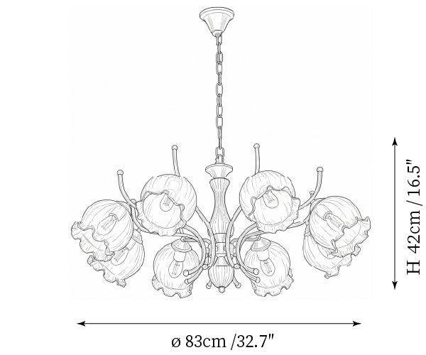 - Model B 8-Lights Size: Dia 83cm x H 42cm / ∅ 32.7″ x H 16.5″