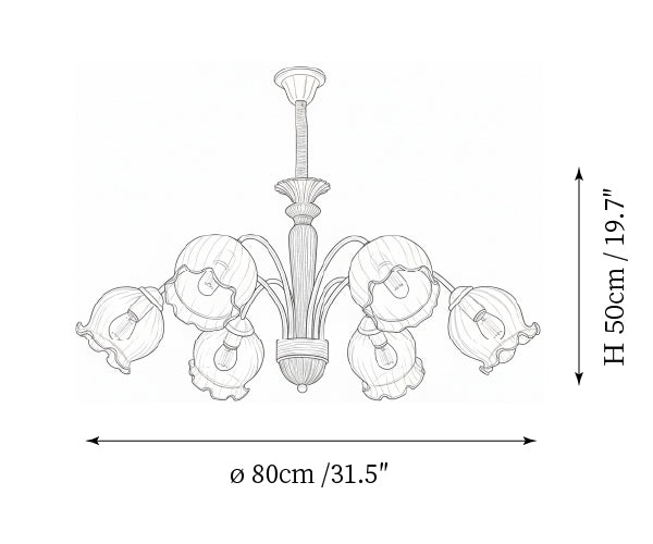 - Model A 6-Lights Size: Dia 80cm x H 50cm / ∅ 31.5″ x H 19.7″