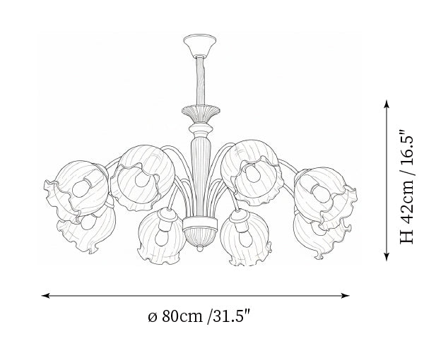 - Model A 8-Lights Size: Dia 80cm x H 50cm / ∅ 31.5″ x H 19.7″