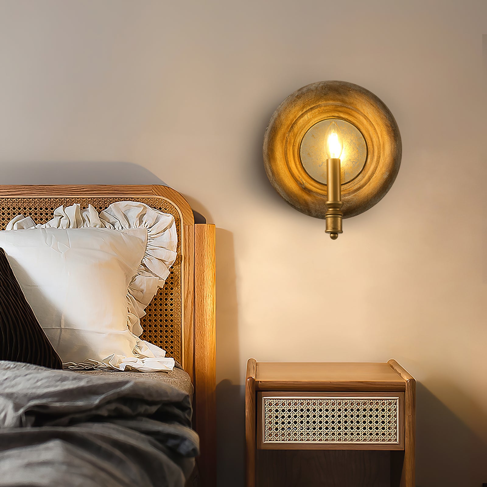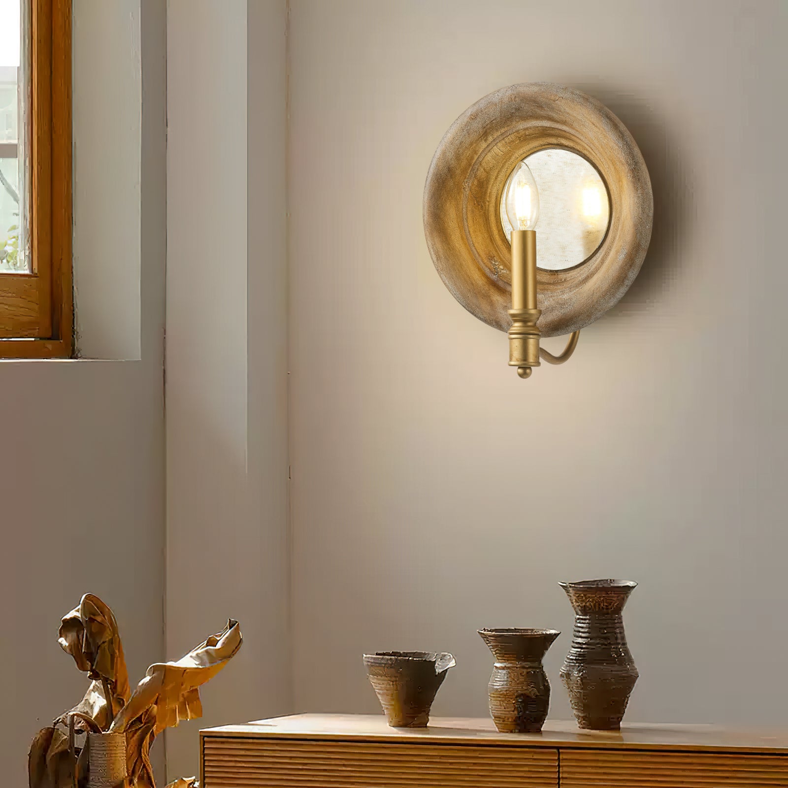Transform your space into a sophisticated haven with Mooijane's Boundary Wall Lamp. This French vintage wood mirrored wall light exudes elegance with premium materials and warm lighting. Easy to install and energy-efficient, it's the perfect choice to add a touch of luxury to any room.