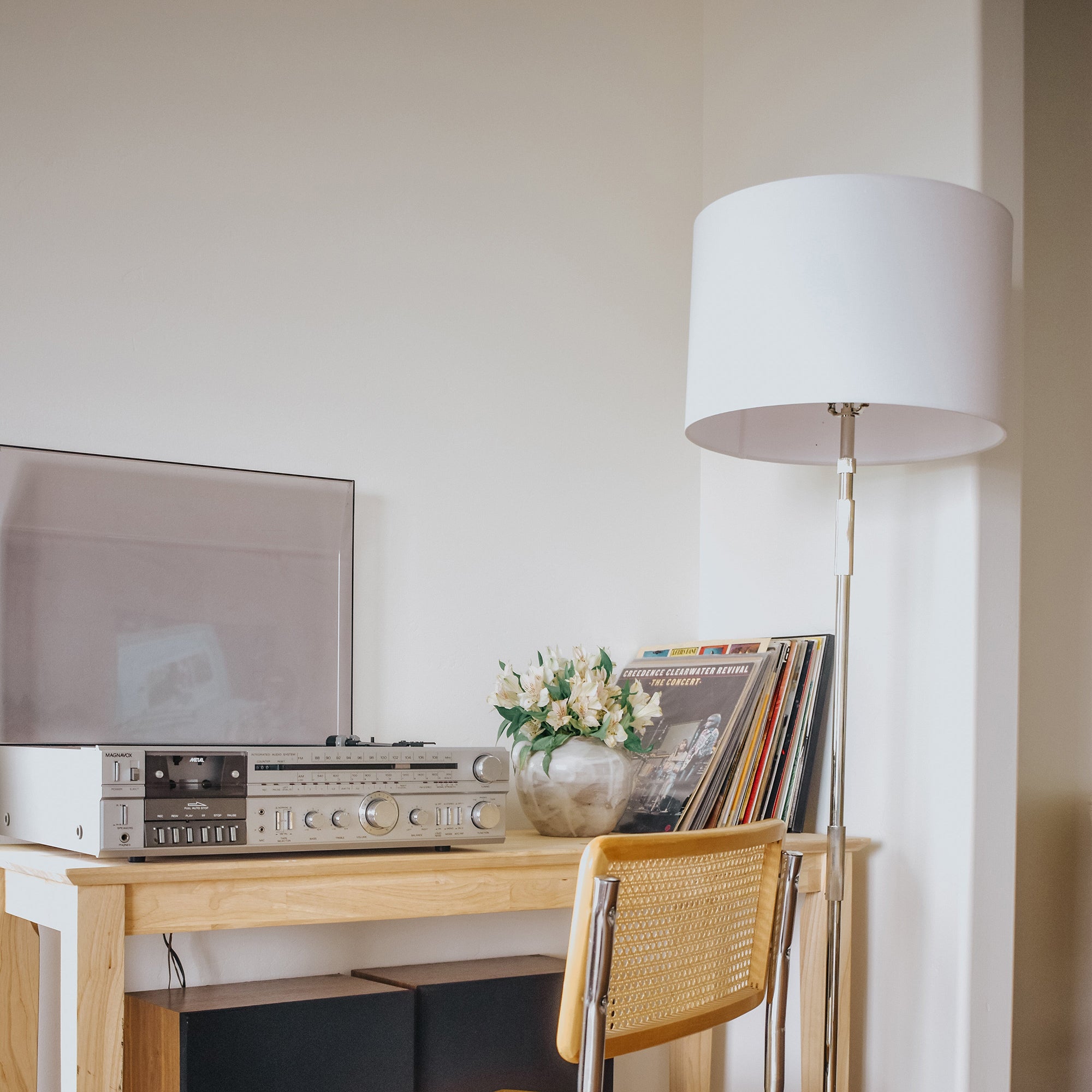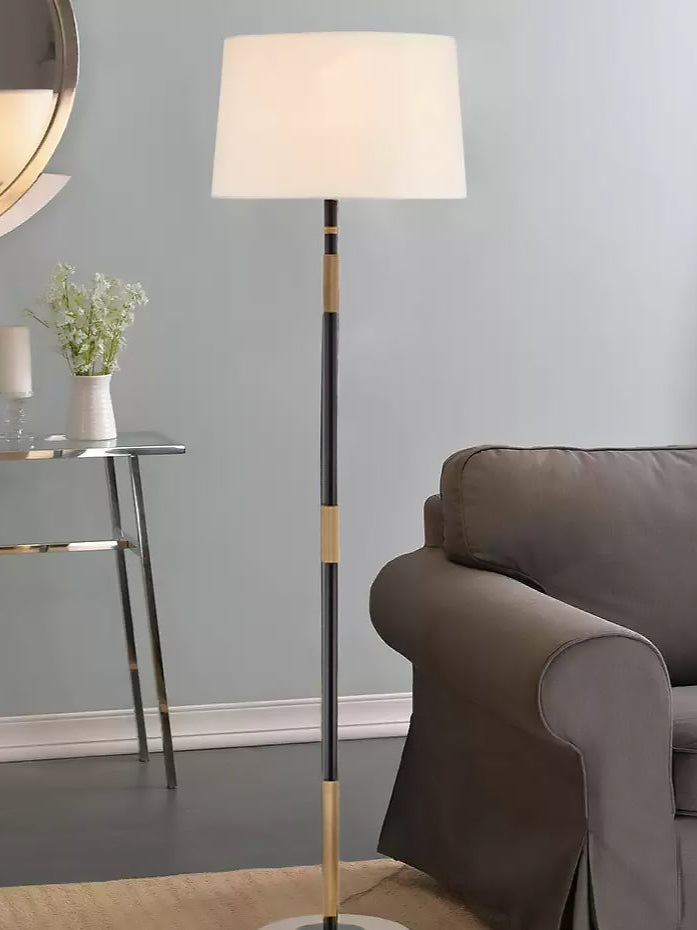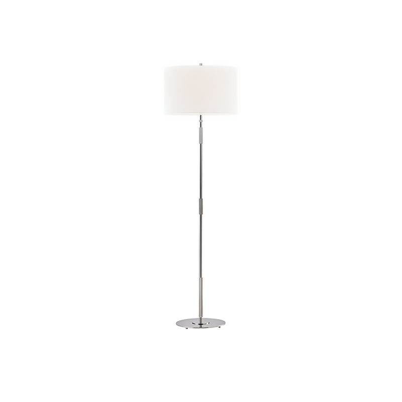 Elevate your space with the Bowery Floor Lamp. This modern lamp features a sleek metal design with ribbed accents and a drum-shaped linen shade. Perfect for adding soft light to any room, it fits perfectly over a side table, sofa or reading nook. Illuminate your home with this stylish and functional lamp.