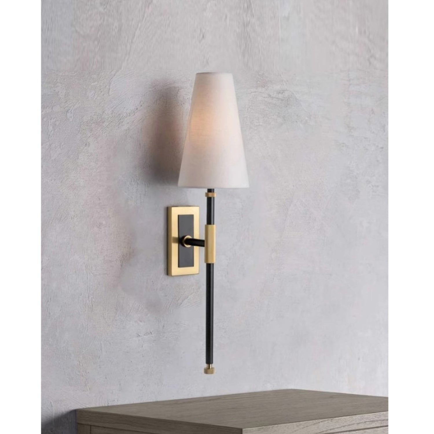 The Bowery Wall Lamp by Mooijane combines transitional elegance with subtle industrial accents. Its slender arms support a linen shade with curled edges and textured ribbon detailing, creating a sophisticated silhouette. Designed to emit a soft, inviting glow, it enhances entryways, dining rooms, or bedrooms with refined style.