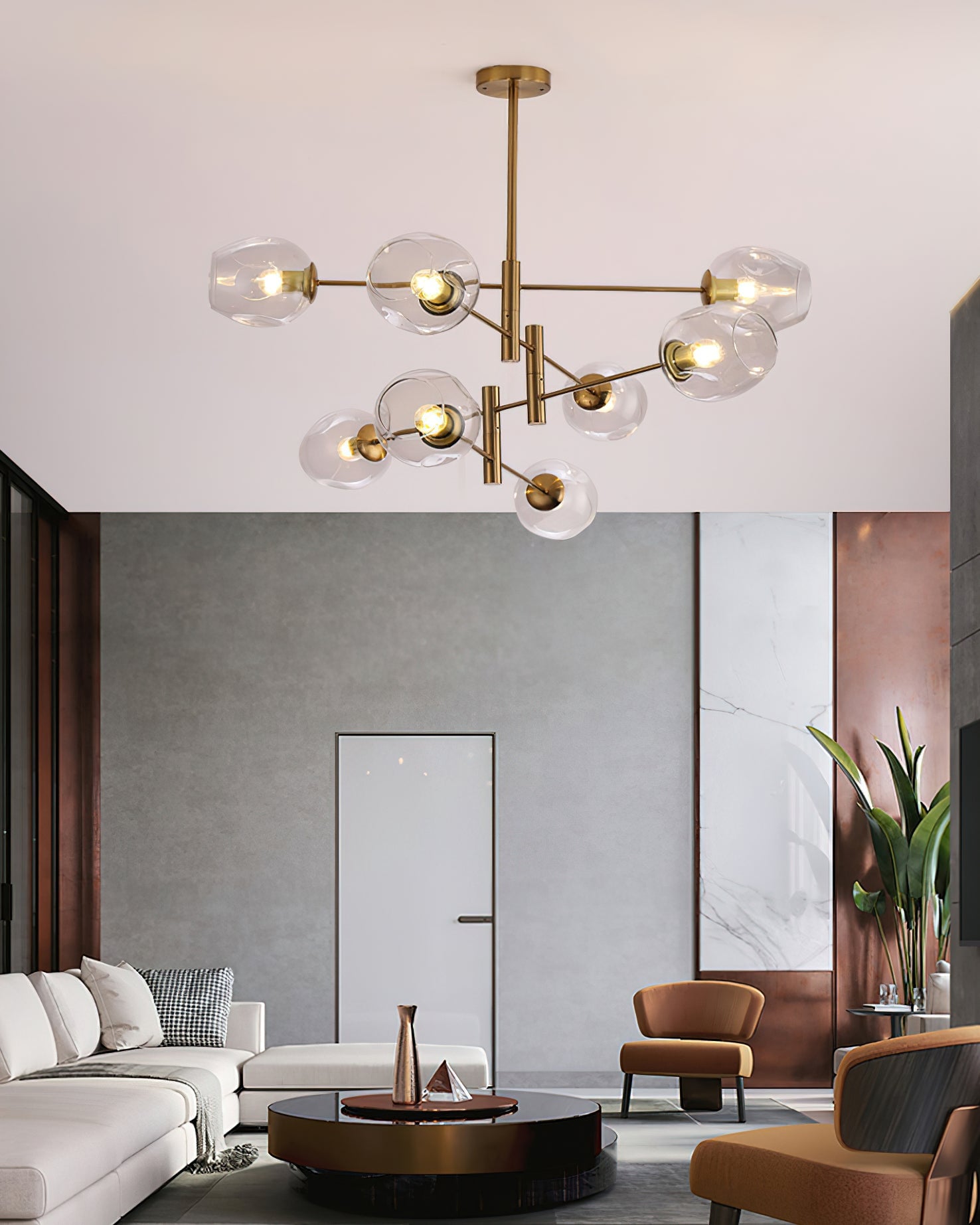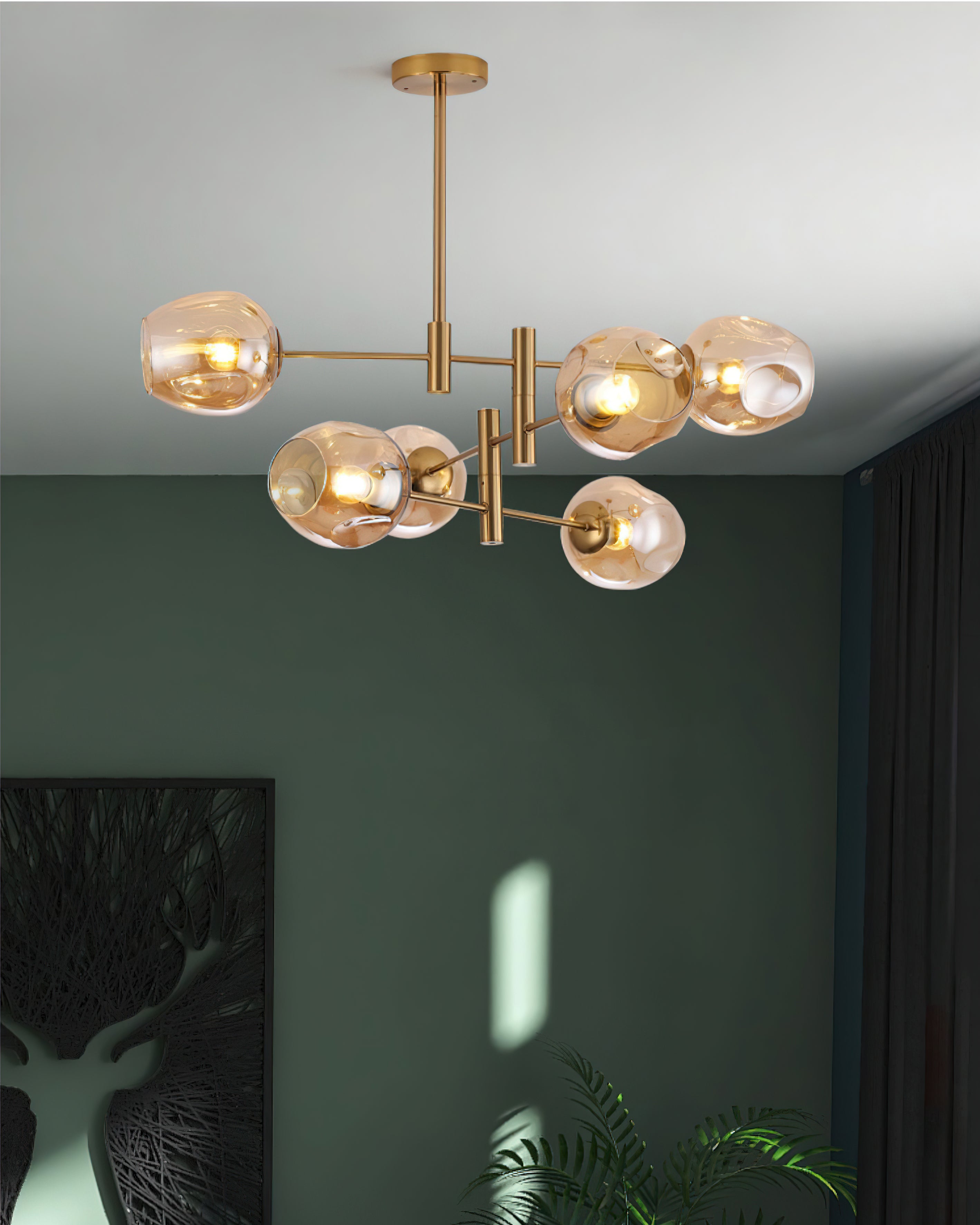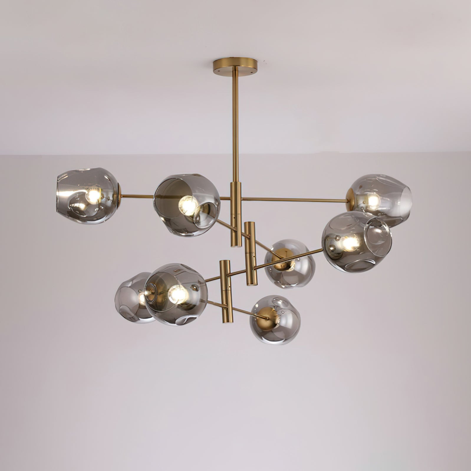 Bring sophistication and individuality into your home with the Branch Optical Chandelier. Boasting a transparent electroplated glass lampshade and a smooth smoked glass lampshade, this chandelier creates a warm and comfortable atmosphere with its uniquely crafted iron art glass. Illuminate your home with this luxurious piece and create a home that surprises you every time you come back.