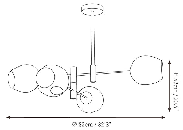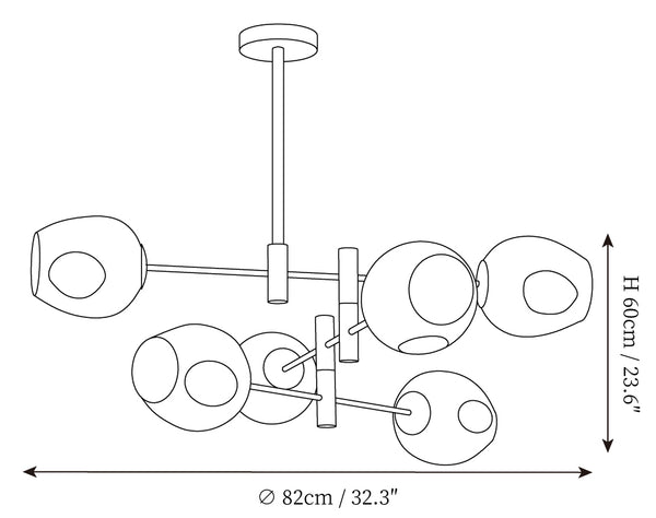 - 6Heads Size: Dia 82cm x H 60cm / ∅ 32.3″ x H 23.6″