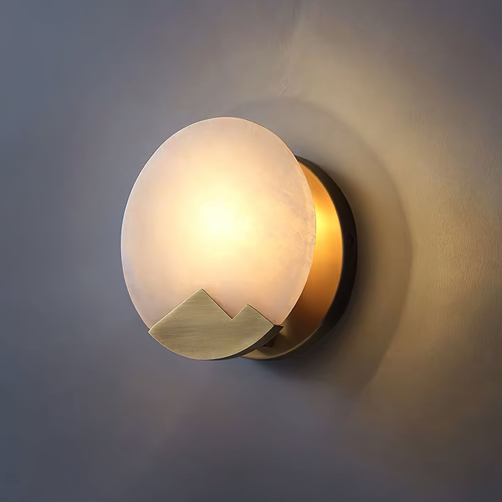 Brass and Alabaster Round Wall Light