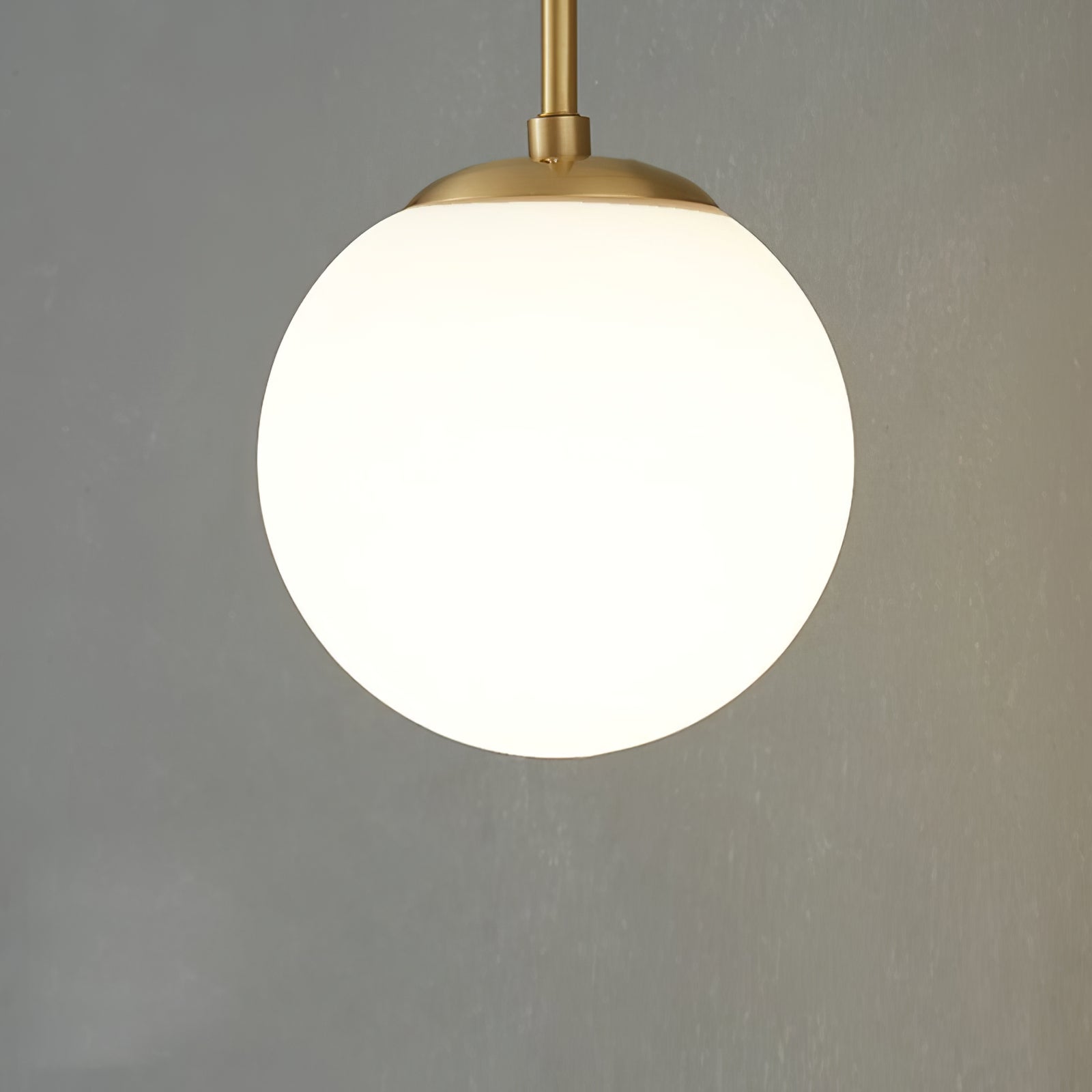 Illuminate your space with the refined elegance of our Brass Globe Arm Wall Sconce. Featuring a sleek gold stem and a radiant white glass globe, this fixture brings subtle drama to any room. The brass finish adds a hint of vintage charm, making it the perfect statement piece for your dining area or hallway. The non-dimming light casts a gentle, glowing ambiance, adding both style and functionality to your decor.