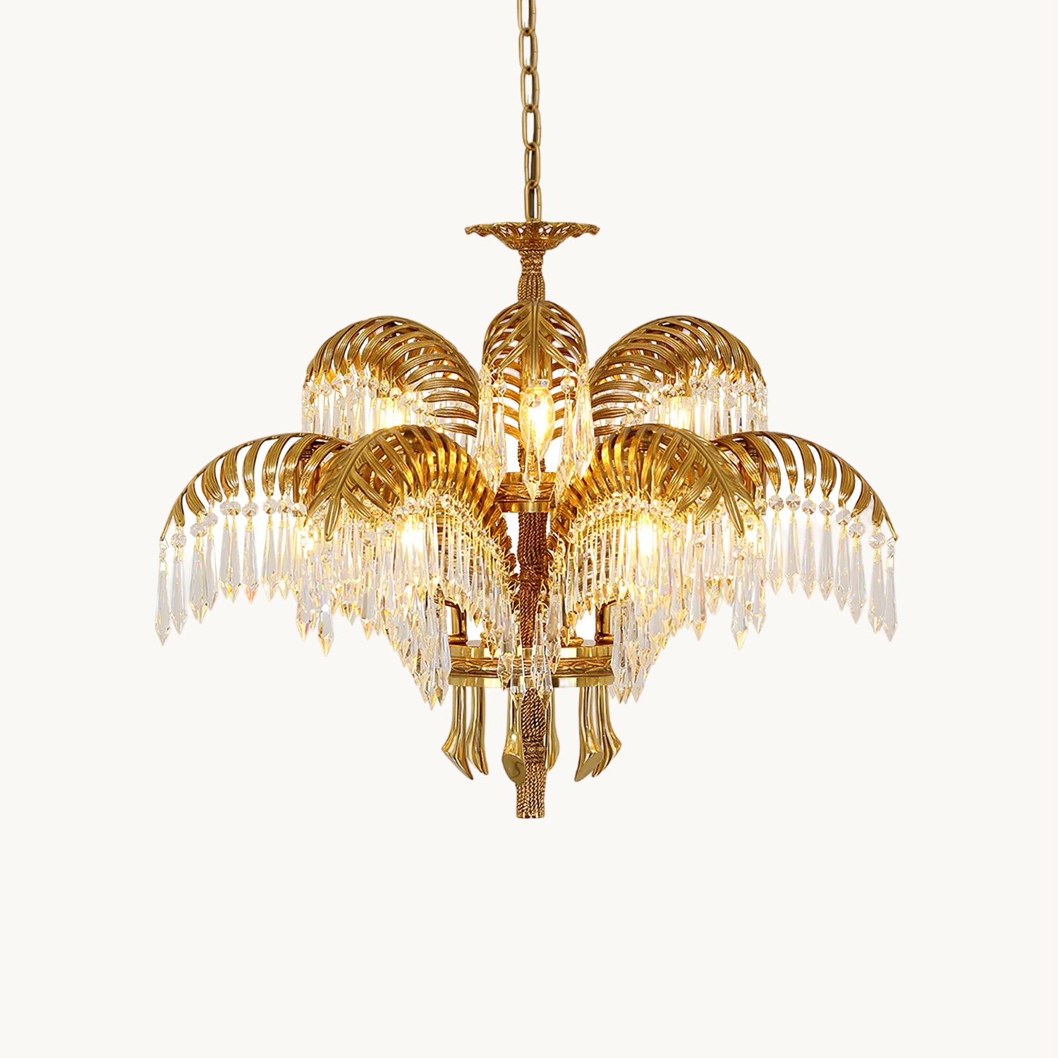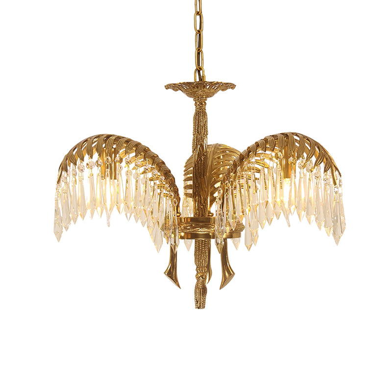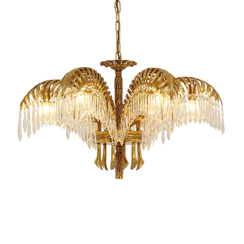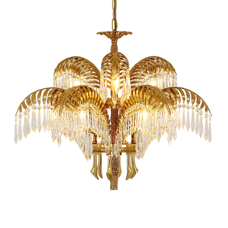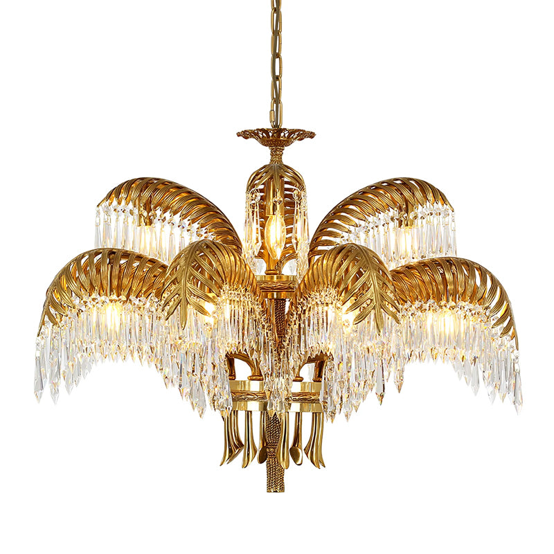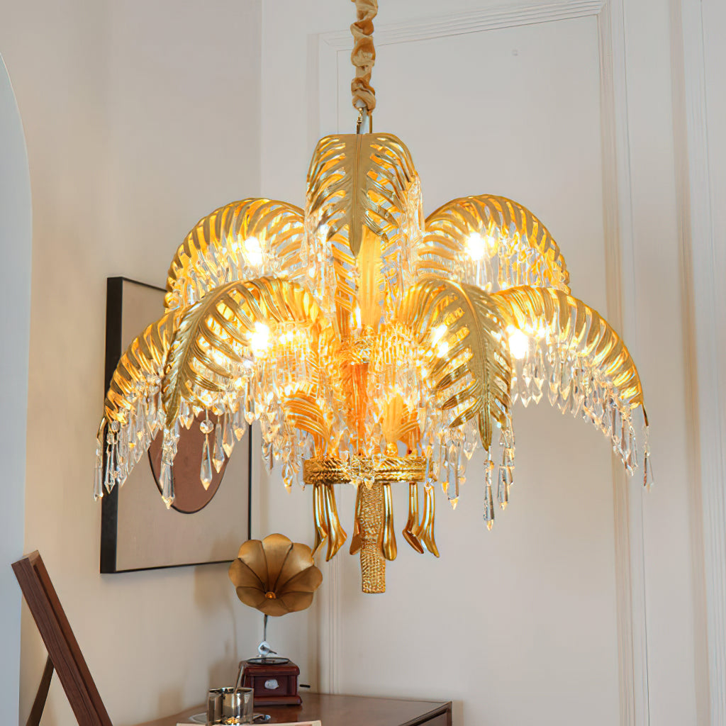 Brass Palm Leaf Crystal Chandelier