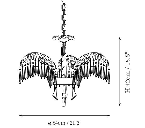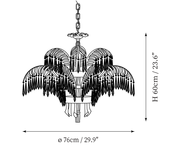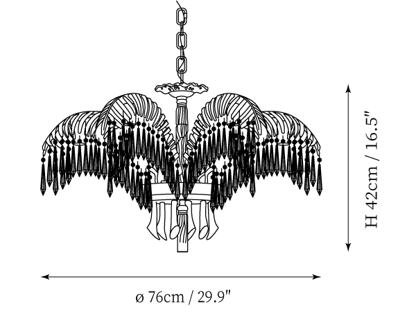 - 6 Heads Size: Dia 76cm x H 42cm / ∅ 29.9″ x H 16.5″