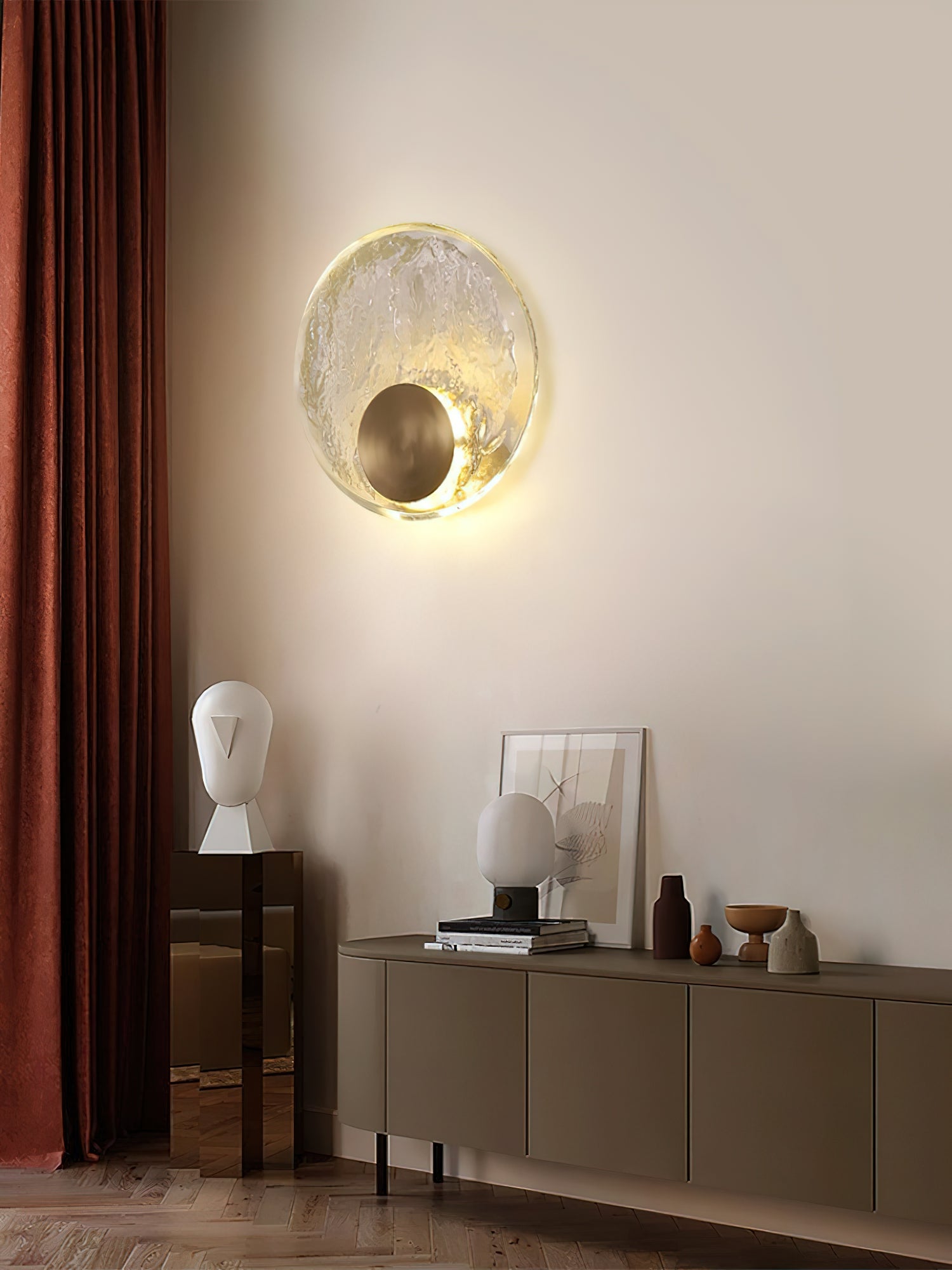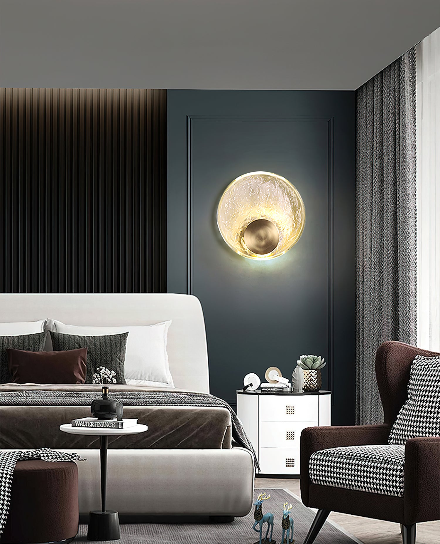 This Brass Round Glass Wall Light is the perfect way to elevate the style of any room. Its sleek and simple design is complemented by its brass and glass materials, delivering an elegant and sophisticated look. Suitable for both residential and commercial spaces, this wall light adds a touch of sophistication.