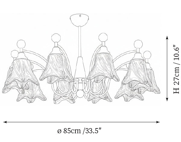- 8-Lights Size: Dia 85cm x H 27cm / ∅ 33.5″ x H 10.6″