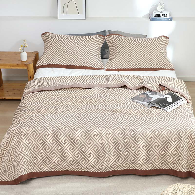 This quilt is suitable as a daily blanket for summer or bedsheet on your bed. Reversible double side design and neat, which adds reliable strength for use and wash. Adopted with reactive printing and jacquard technology. It can be used as an air conditioning blanket, airplane blanket, bedside towel, sofa blanket, shawl blanket.