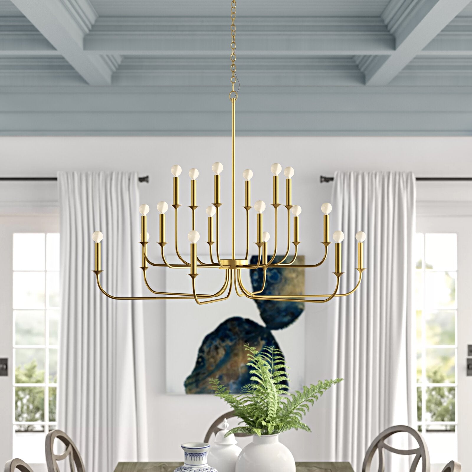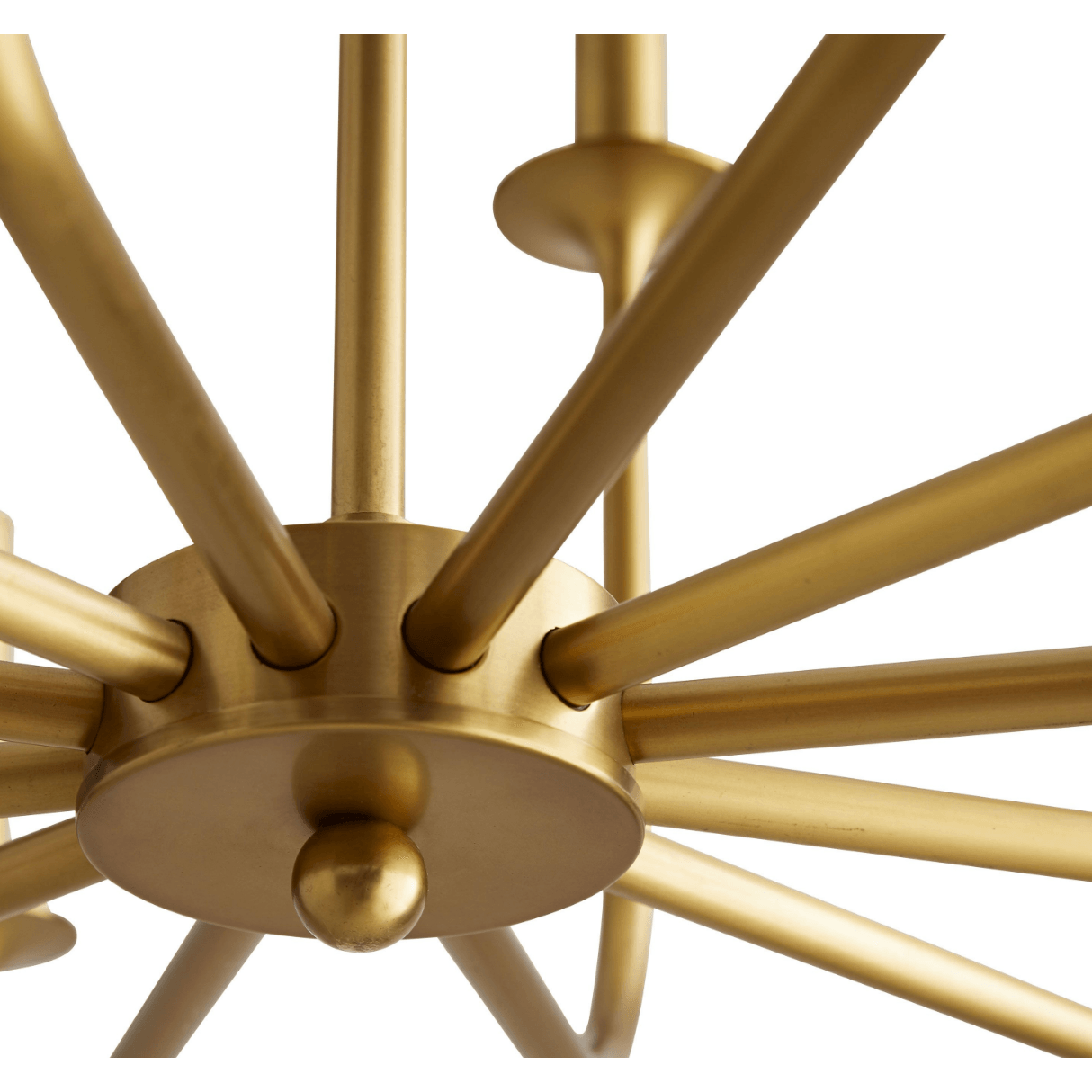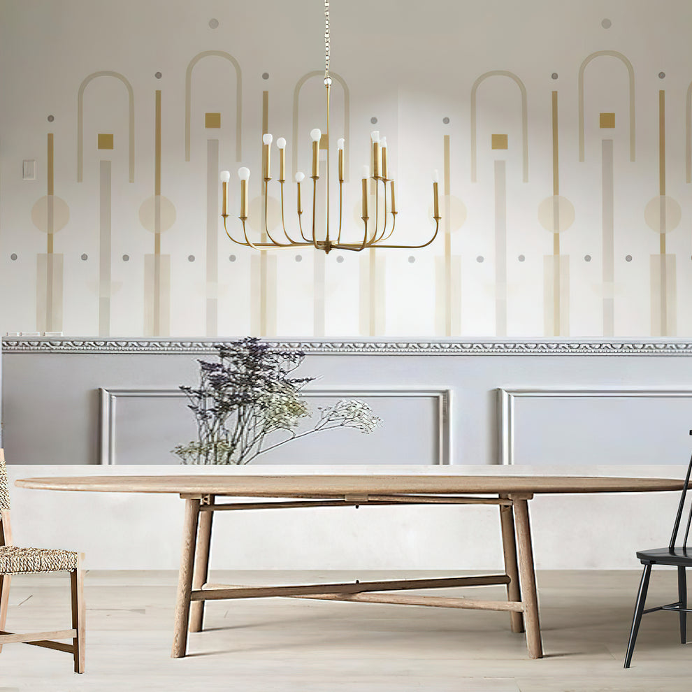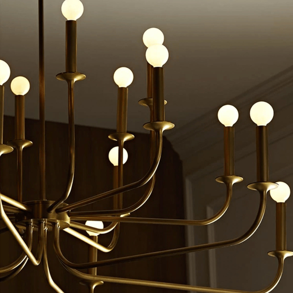 Breck Modern Gold Multi-Arm Chandelier is an elegant chandelier with minimalist aesthetics and modern design at its core. Its unique structure features multi-layered branch-shaped arms, each of which presents smooth and symmetrical lines, showing a delicate geometric beauty. The lamp body is made of gold metal, and the surface exudes a warm metallic luster, creating a luxurious yet low-key atmosphere.