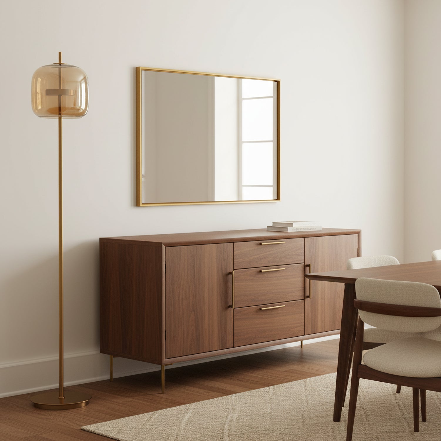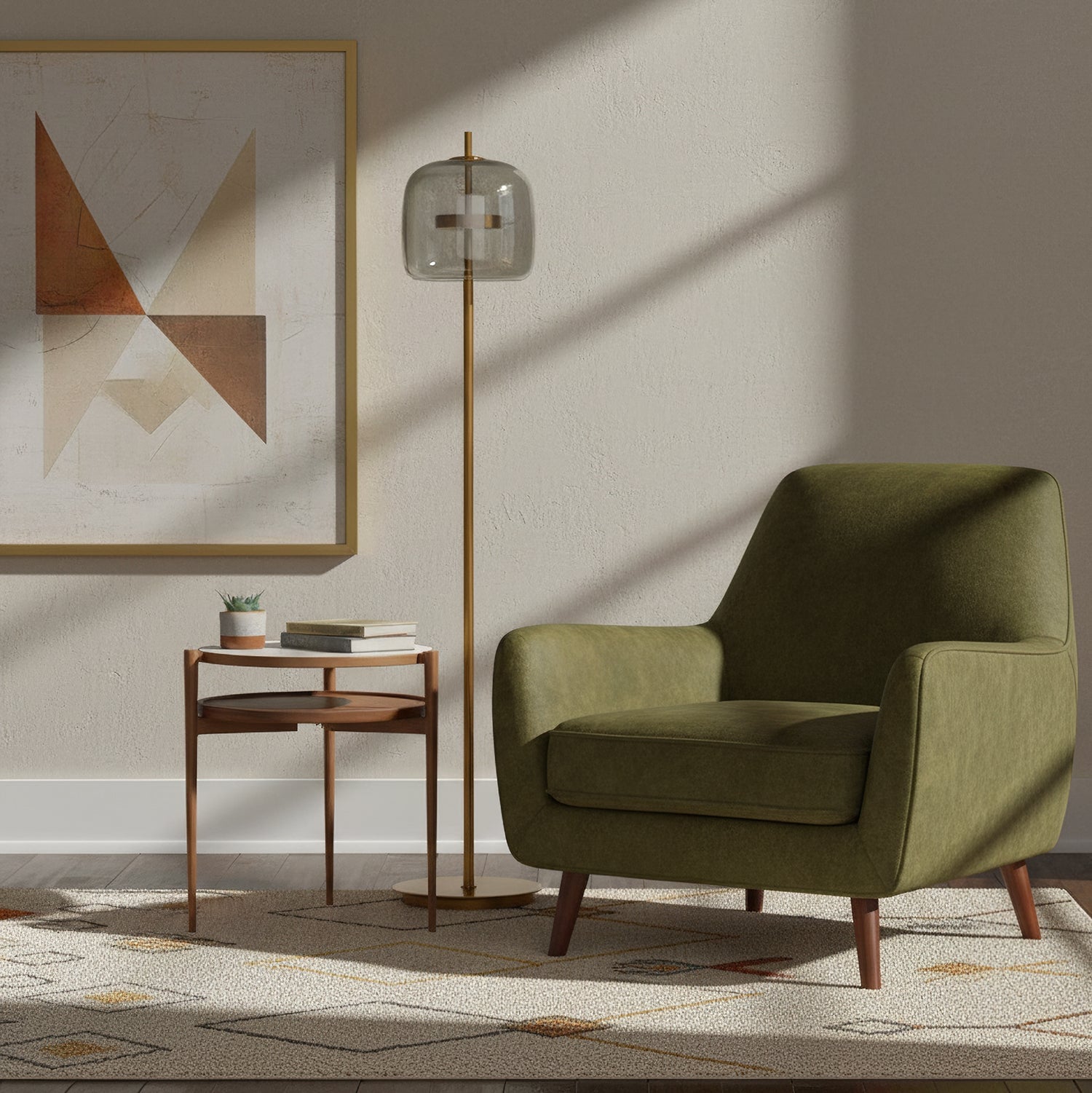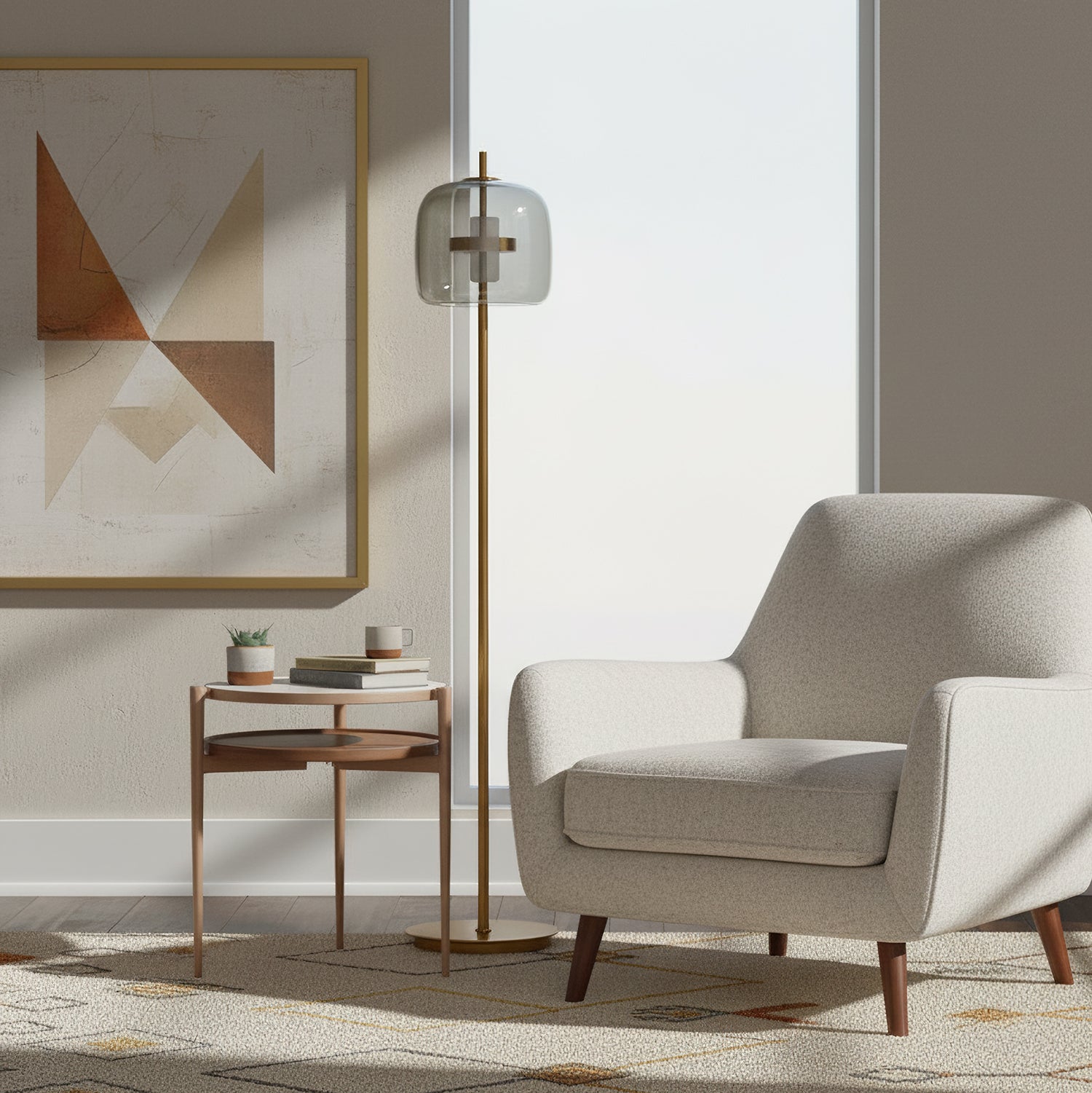 The Brevin Floor Lamp by Mooijane captures vintage charm through its elegant blown-glass design. Two seamlessly joined glass forms create a smooth, sculptural silhouette with subtle tone-on-tone hues that enhance its refined character. The result is a luminous, graceful piece that adds warmth and sophistication to any interior—perfect for living rooms, reading corners, or stylish lounges.