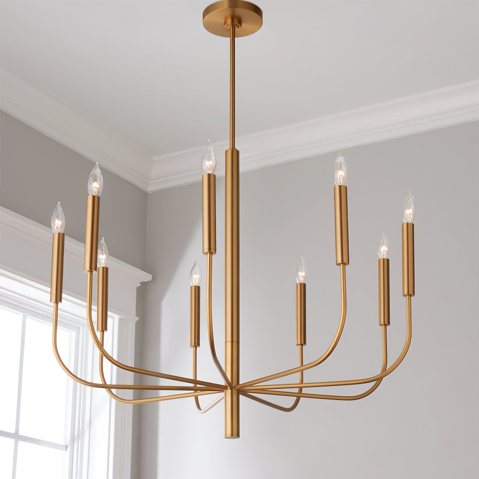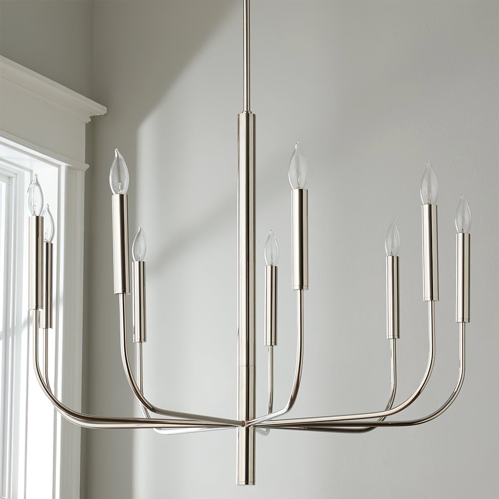 The Brianna chandelier offers a sophisticated balance of modern and classic elements. With its smooth, uninterrupted lines and tubular arms, this fixture evokes a sense of fluidity and harmony. The minimalist silhouette, highlighted by its polished finish, adds an understated yet impactful charm to any room, from dining areas to bedrooms.