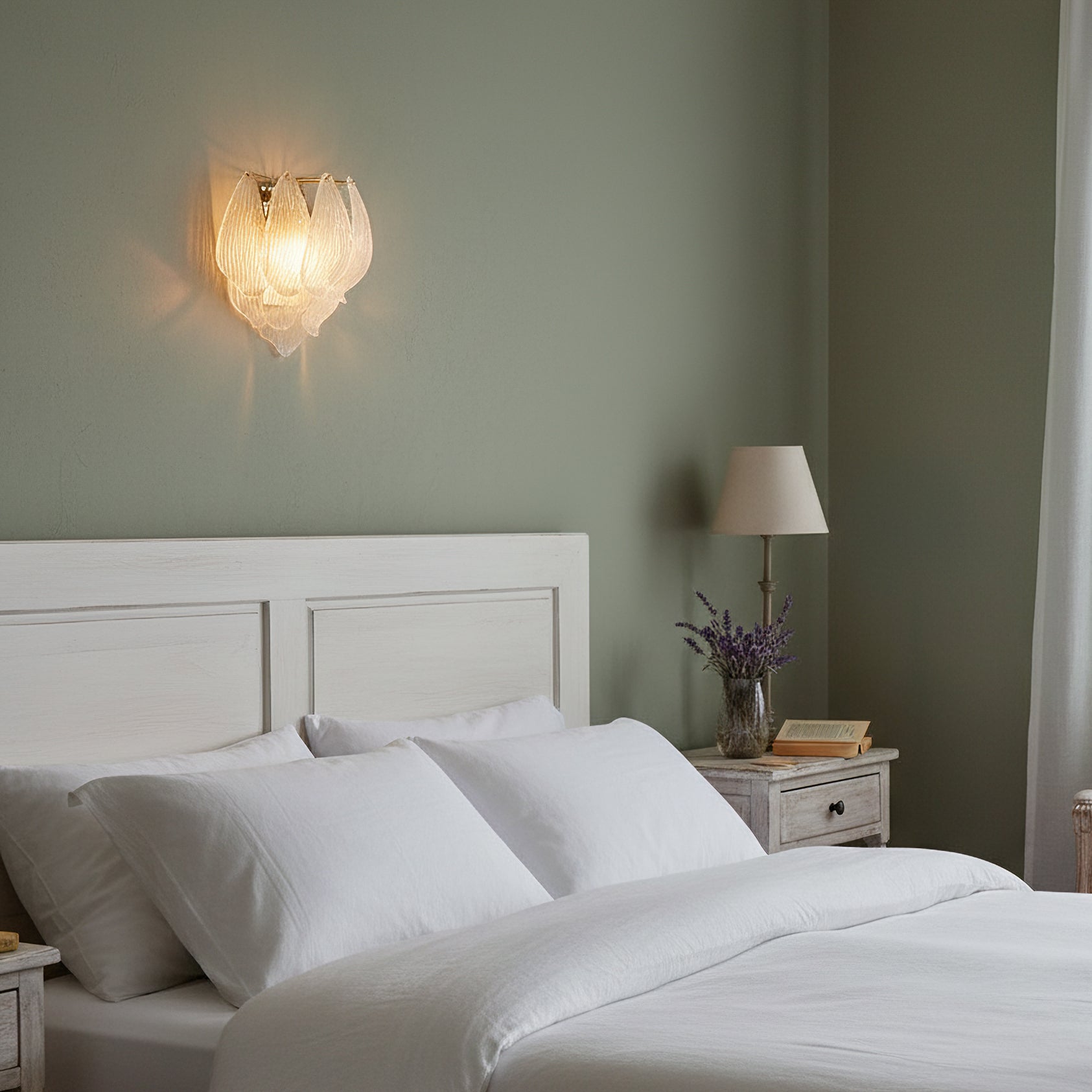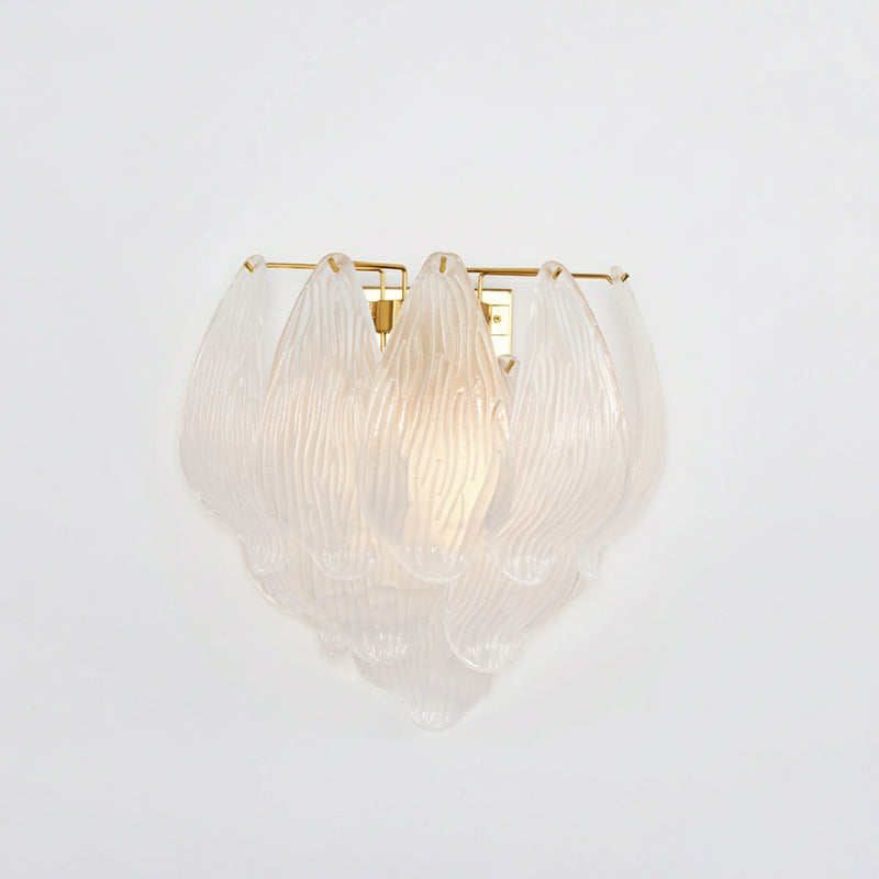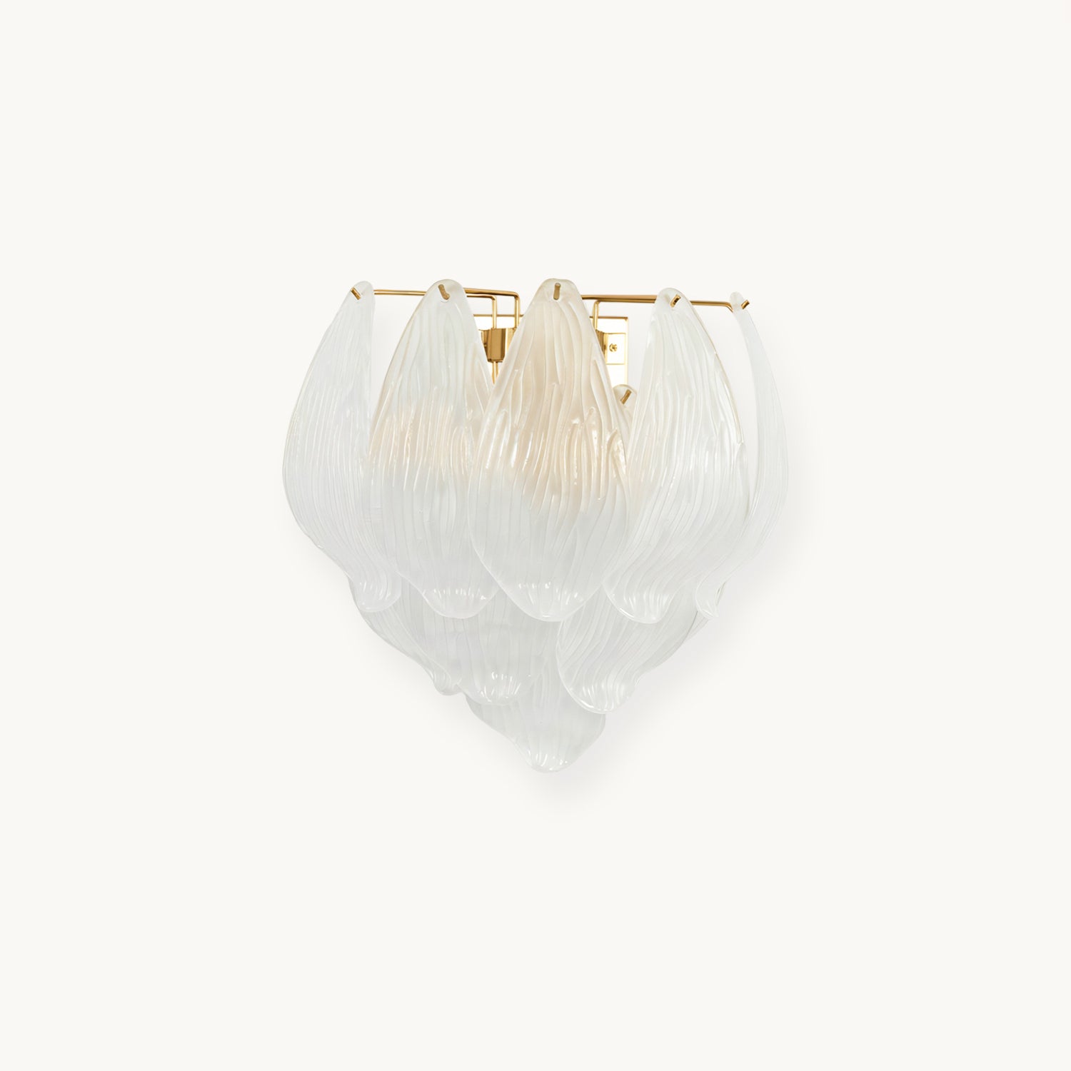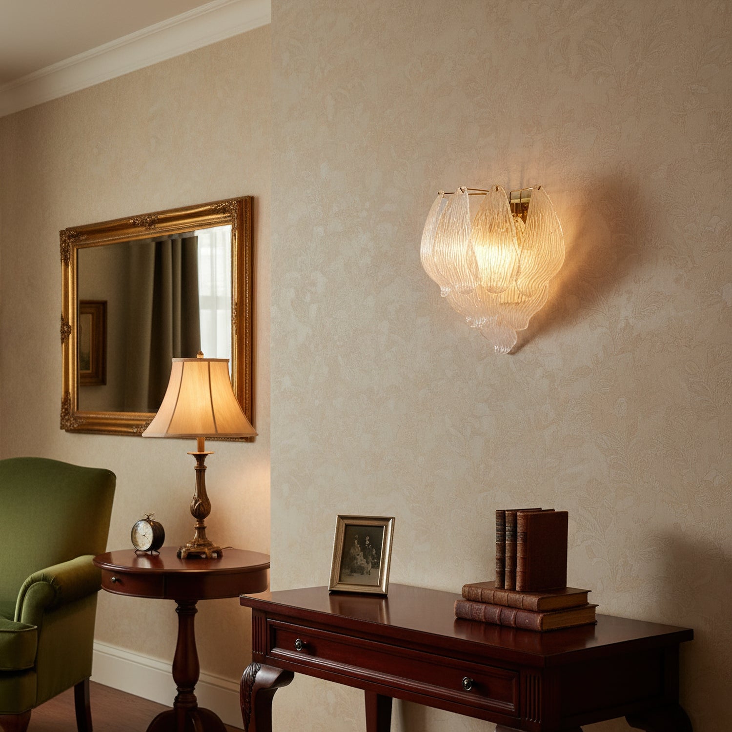 The Brielle Wall Lamp by Mooijane features hand-blown Murano glass shaped like cascading petals, casting a soft, luxurious glow. Perfect for living rooms, hallways, or bedrooms, it adds refined elegance and artistic charm to any interior.