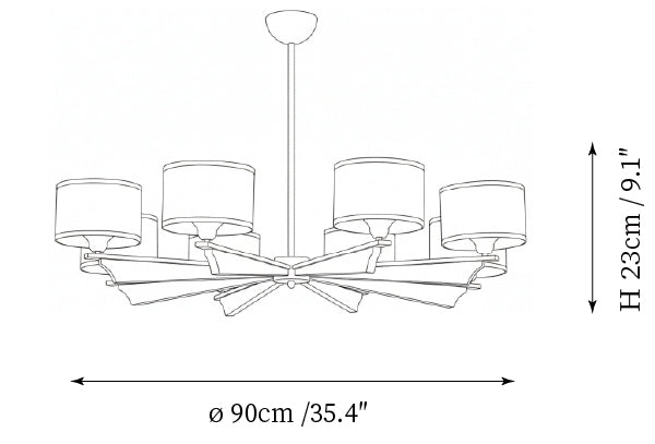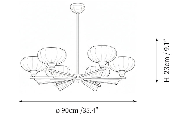 - Model B 6-Lights Size: Dia 90cm x H 23cm / ∅ 35.4″ x H 9.1″