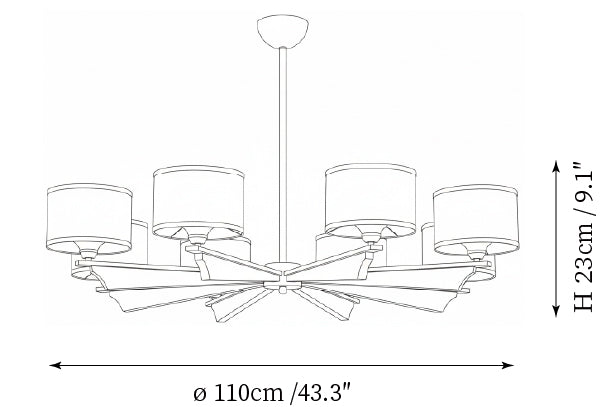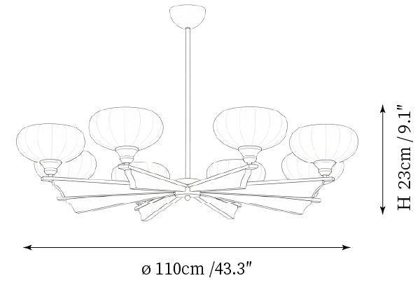 - Model A 8-Lights Size: Dia 110cm x H 23cm / ∅ 43.3″ x H 9.1″