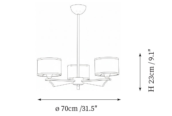 - Model B 3-Lights Size: Dia 70cm x H 23cm / ∅ 31.5″ x H 9.1″