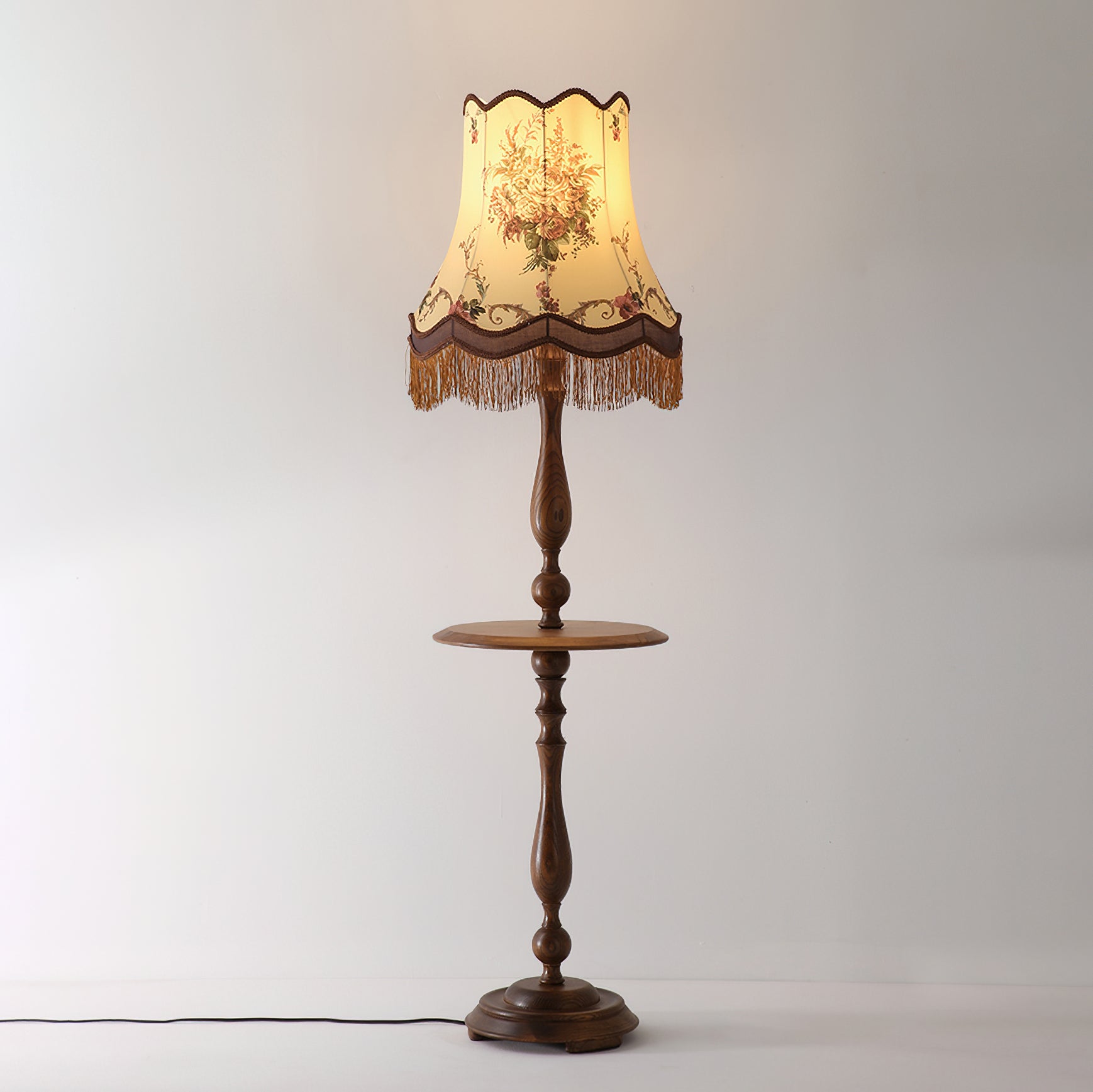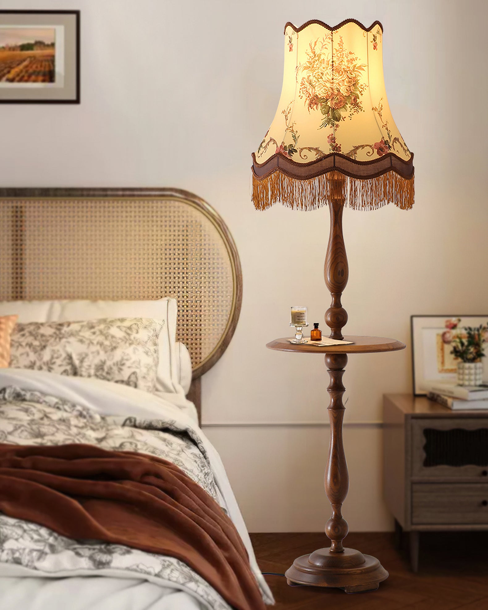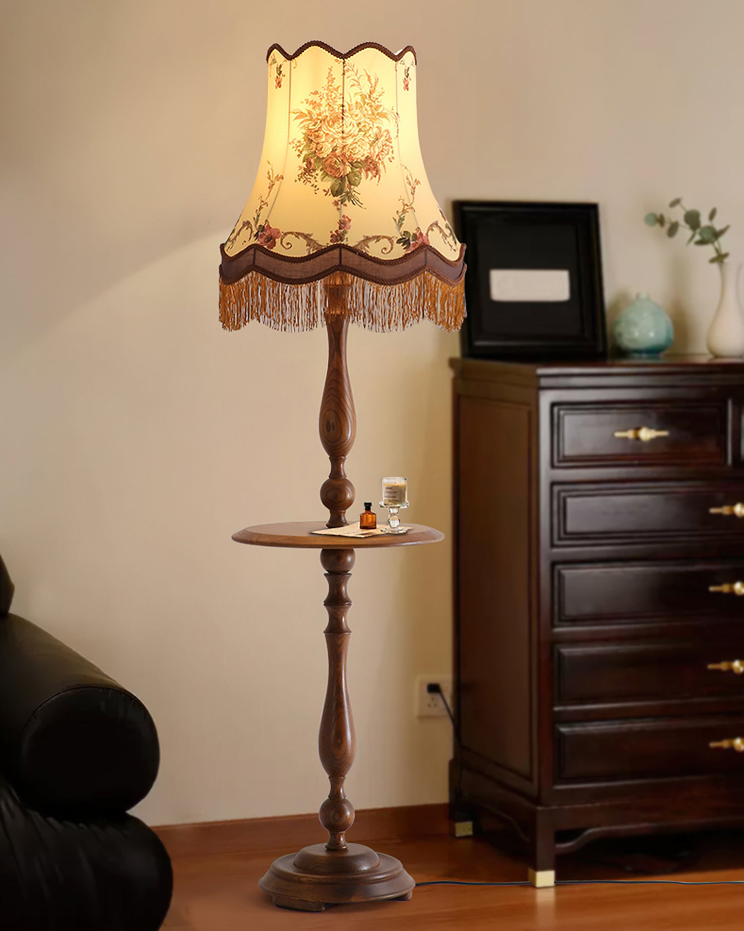 Mooijane’s Briony Tassel Floor Lamp blends vintage elegance with practical charm. Featuring a sculptural solid wood base that doubles as a compact coffee table, it offers both stability and function. The embroidered fabric shade, finished with delicate tassels, evokes classic European allure. Ideal for living rooms, studies, or vintage-inspired spaces, Briony brings warmth, character, and timeless sophistication to any interior.