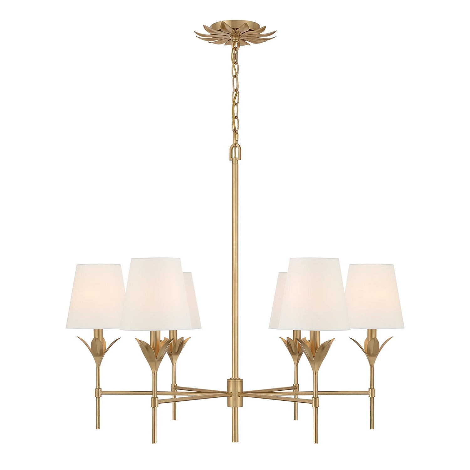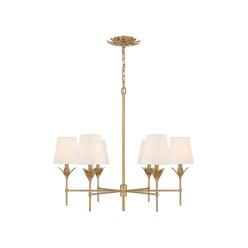 The Broche 6-Light Chandelier by Mooijane blends traditional elegance with modern design. Featuring a candelabra-style frame and white linen shades, it’s complemented by layered wrought iron leaves that create a beautiful, functional light display. Perfect for bedrooms, living rooms, or kitchens, it adds refined glamour to any transitional or modern space.