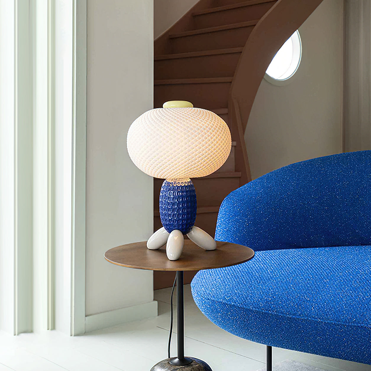 The Bubio Balloons Table Lamp from Mooijane blends playful charm with refined elegance. Crafted from glossy porcelain in three vibrant colors, its design evokes the fluid beauty of hand-blown glass. Lightweight yet durable, this lamp adds a touch of artistic whimsy to any space—perfect for bedside tables, shelves, or creative interiors. A joyful fusion of design and craftsmanship.