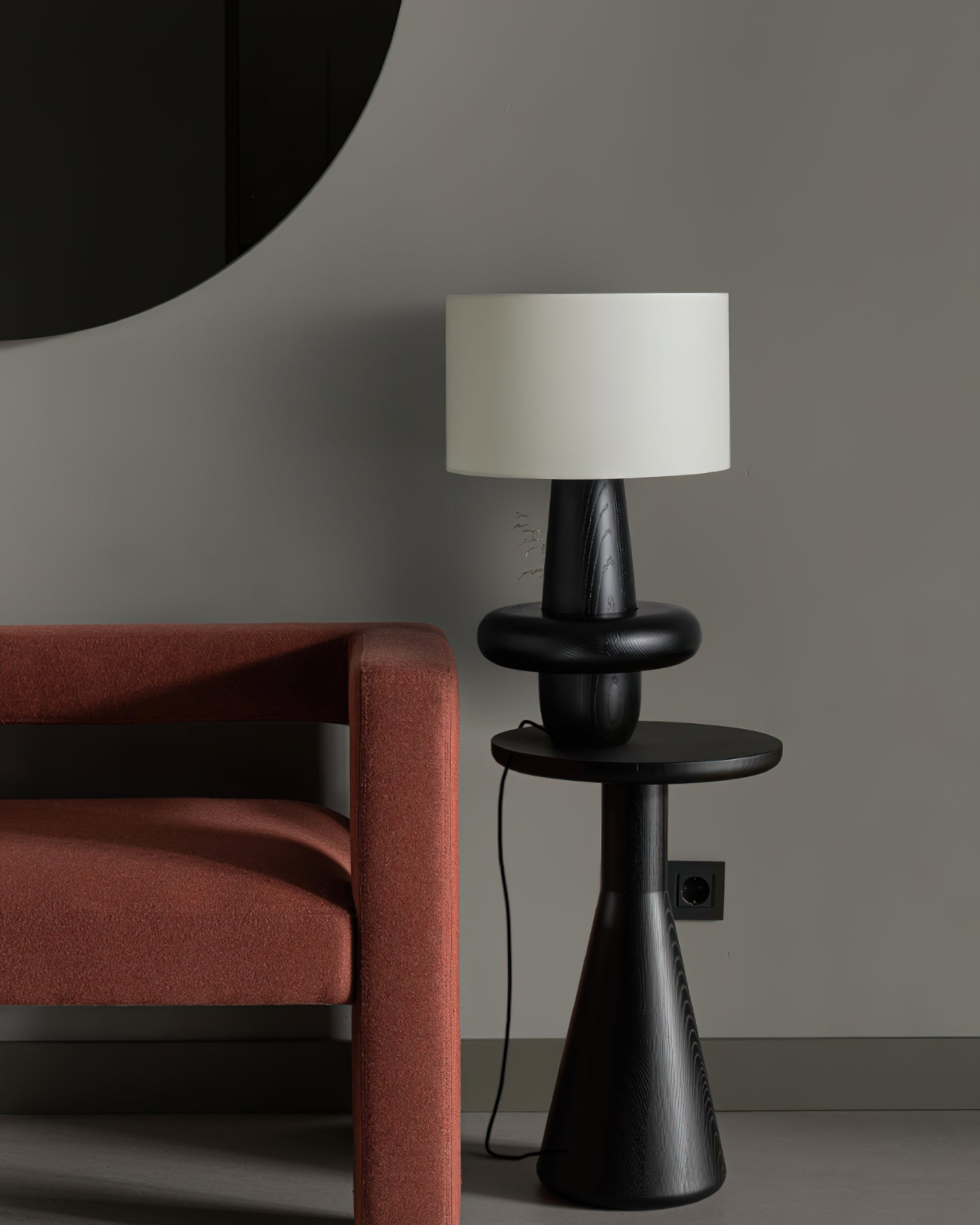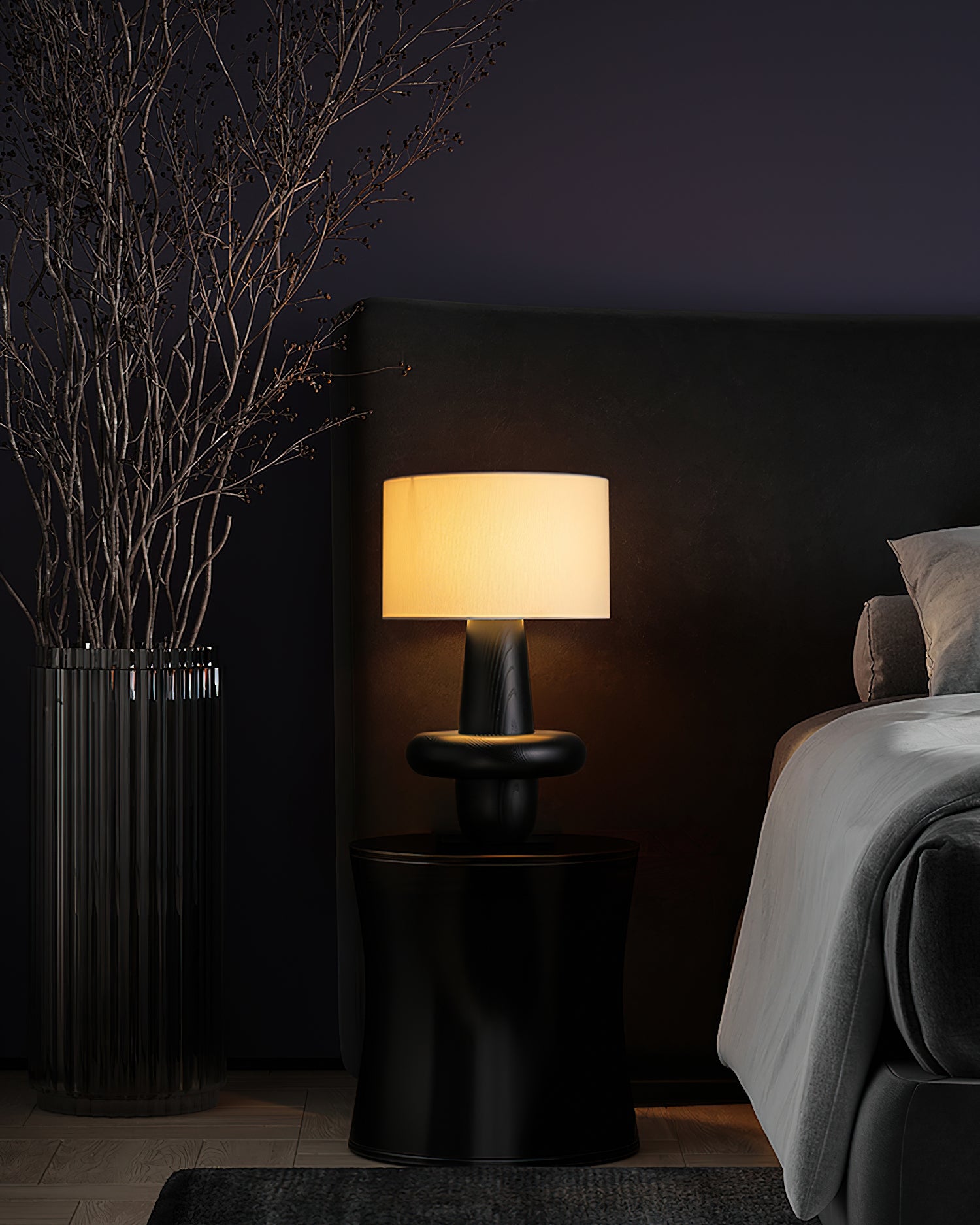 The Buddha Til Table Lamp is a stylish piece that seamlessly blends natural materials. Crafted from solid wood and fabric, the lamp emits a soft, non-intrusive light that brings warmth to your space. The wood grain creates a stunning and unique texture, making it a conversation starter. Enjoy the natural beauty and comforting glow of this gorgeous table lamp.