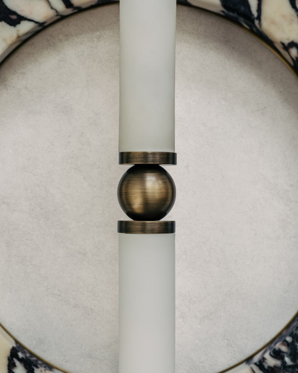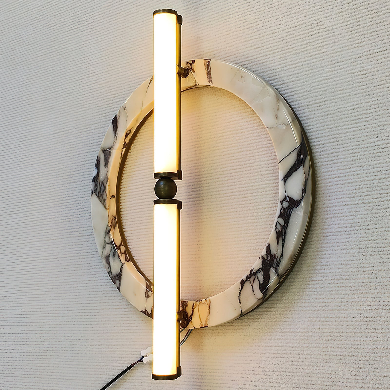 Bring elegance and warmth to any room with the Bulgari marble ring wall lamp! Handcrafted with meticulous attention to detail, this lamp is a true work of art that will enhance your space and create a cozy ambiance. Brighten up your home with this stunning and functional piece that will surely impress all your guests.