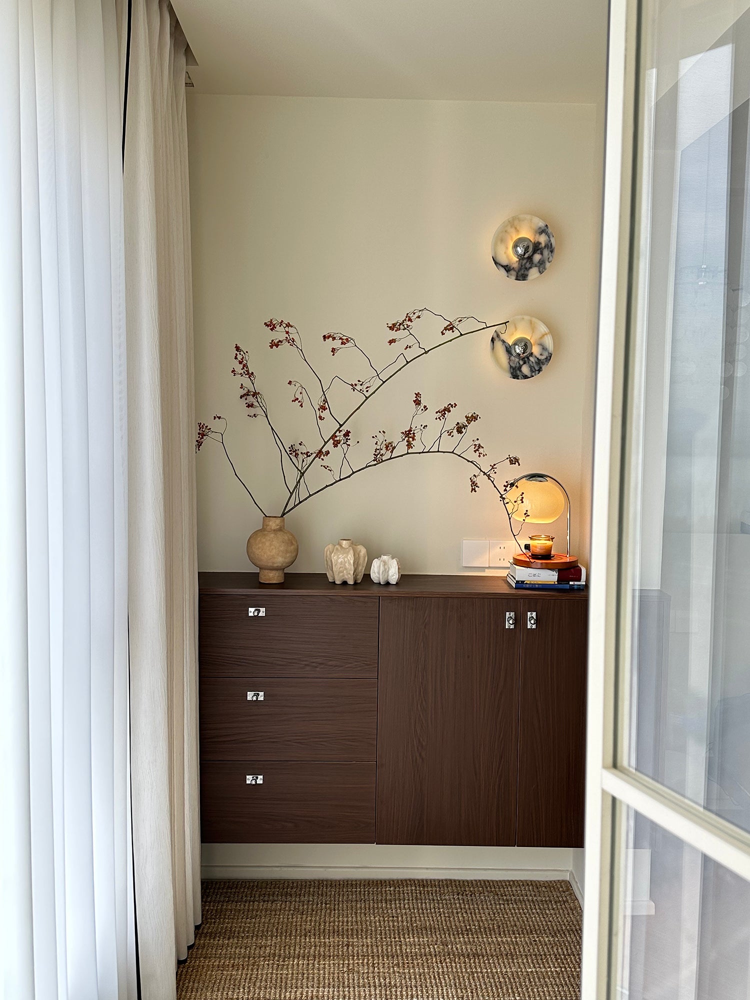 Elevate your home decor with the Bulgari round wall lamp. Expertly crafted with smooth curves and harmonious proportions, this lamp exudes a unique and captivating beauty. The combination of straight lines and curved shapes adds a touch of intrigue to this eye-catching and durable piece. Experience the charm of this lamp's distinctive design and add a touch of soul to your space.