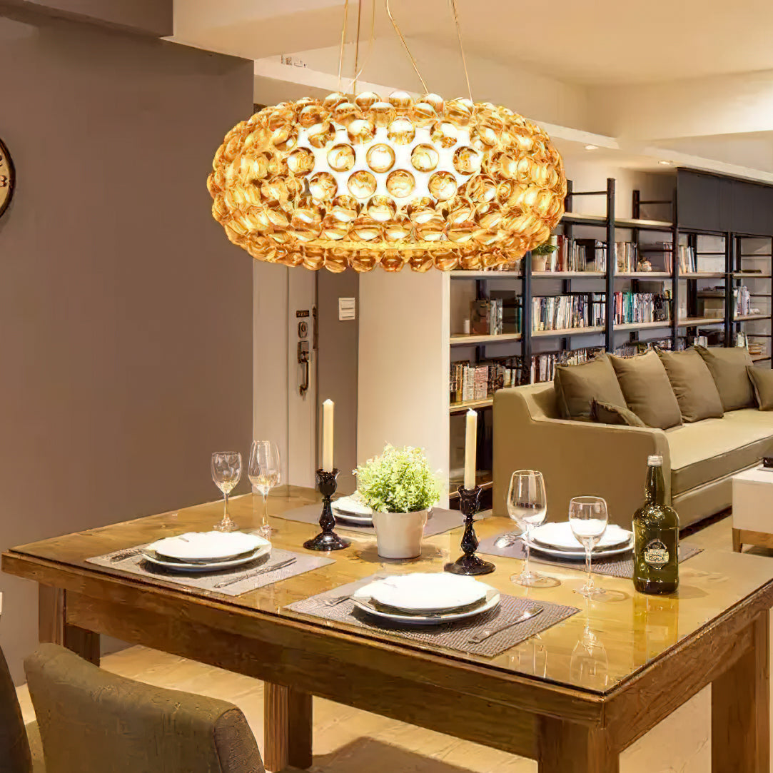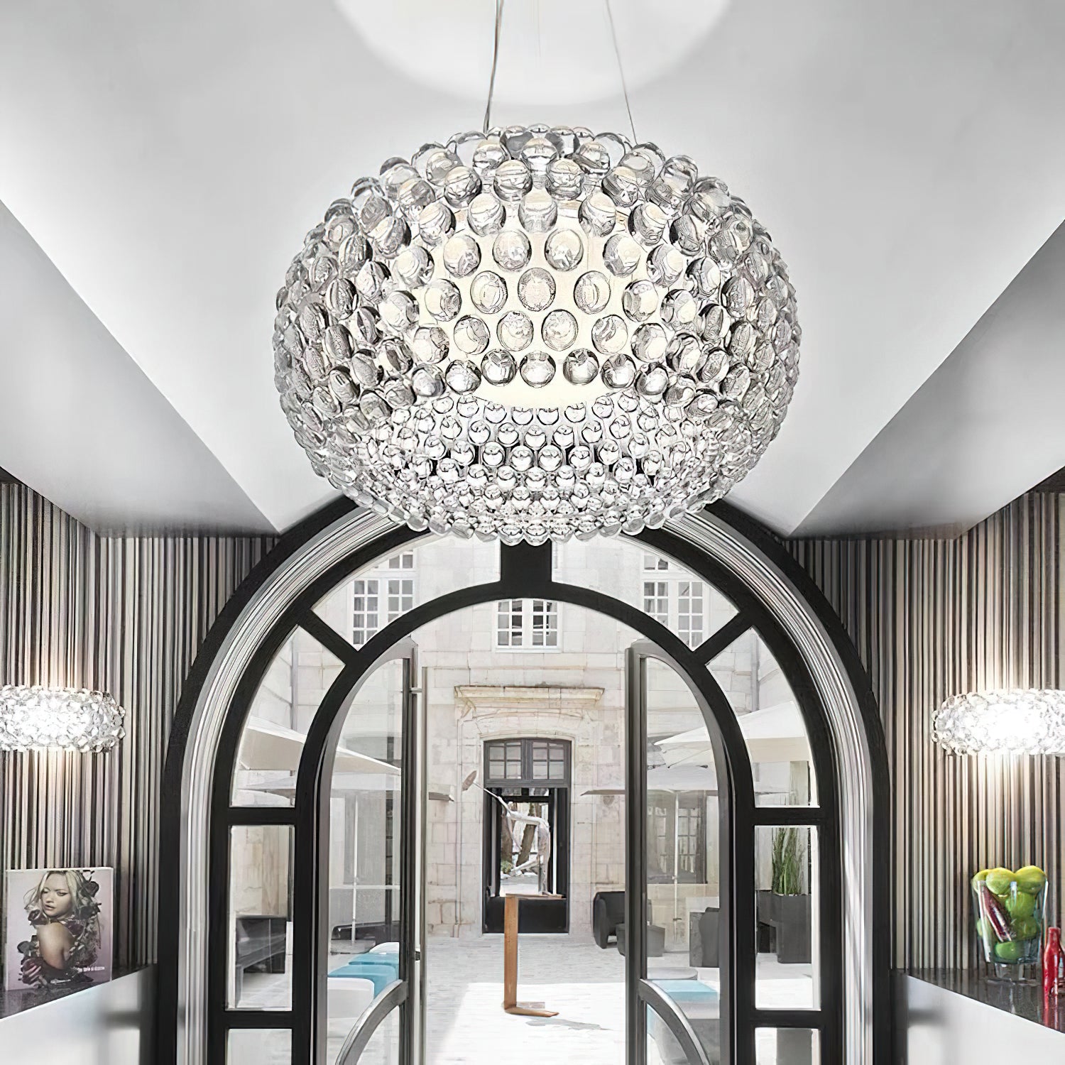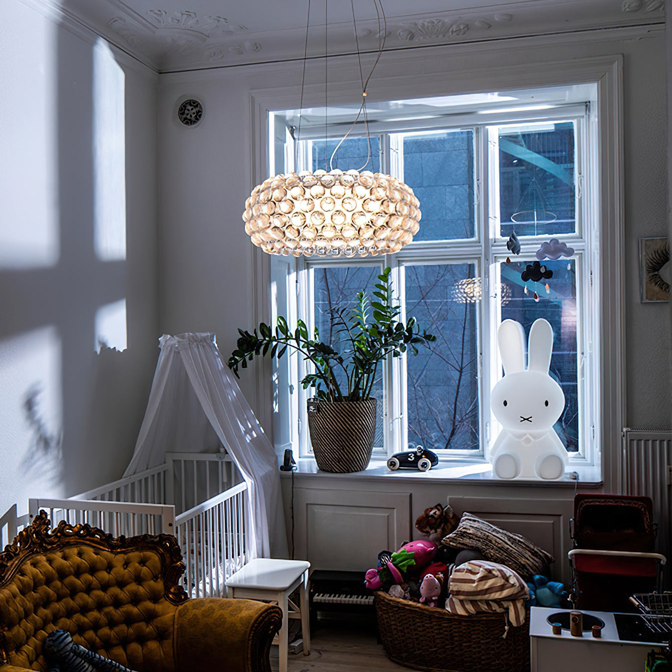The Caboche Pendant Light by Mooijane is a charming lighting solution that will add a touch of luxury to any space. This unique design features a clear acrylic sphere with sparkling crystals embedded inside, creating a stunning, sparkling effect. It is perfect for any room and will bring elegance and sophistication to your dining room, living room, or bedroom.