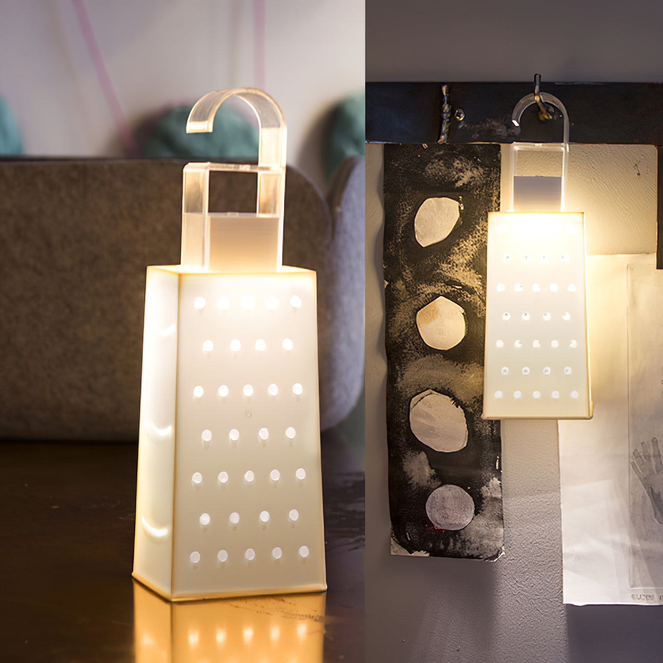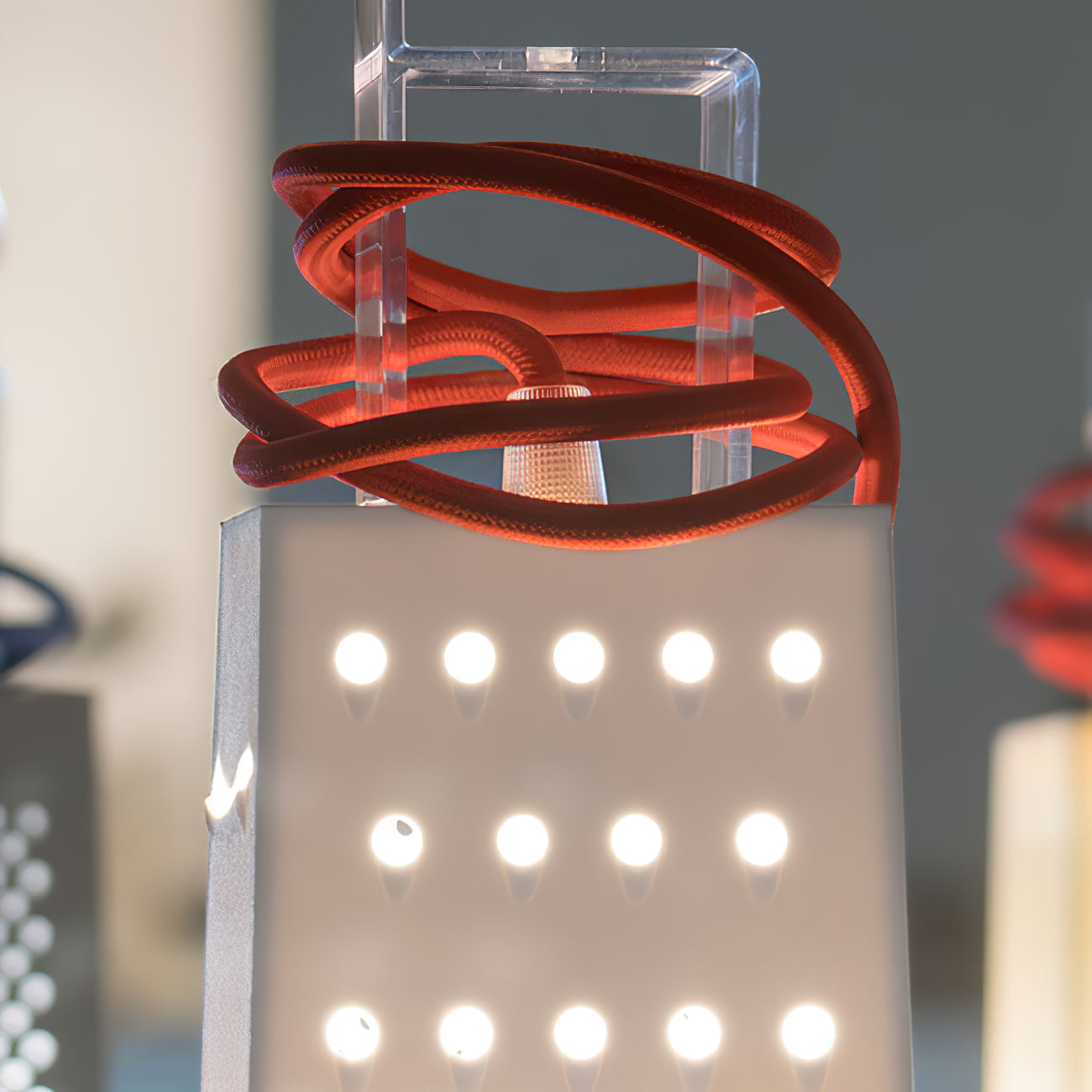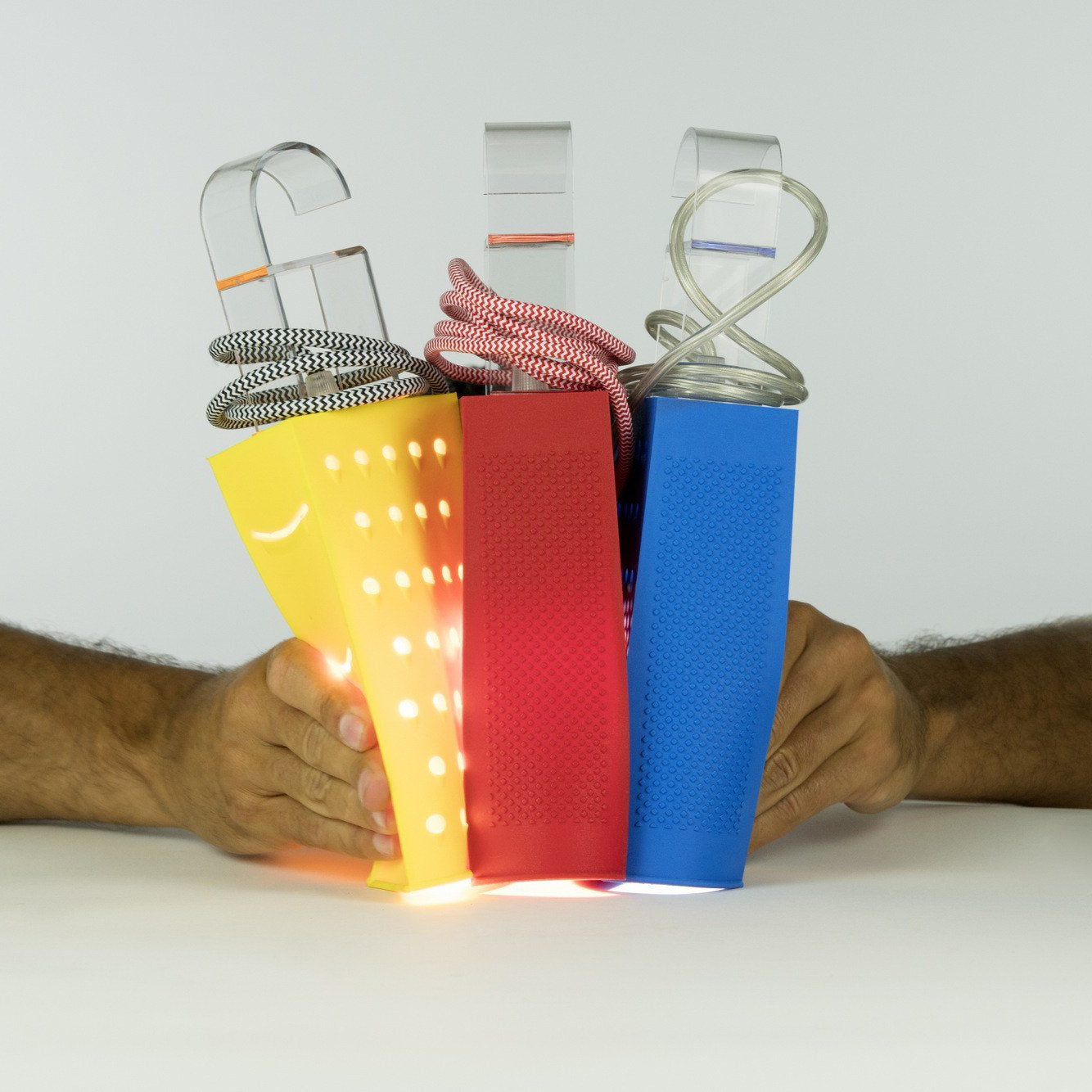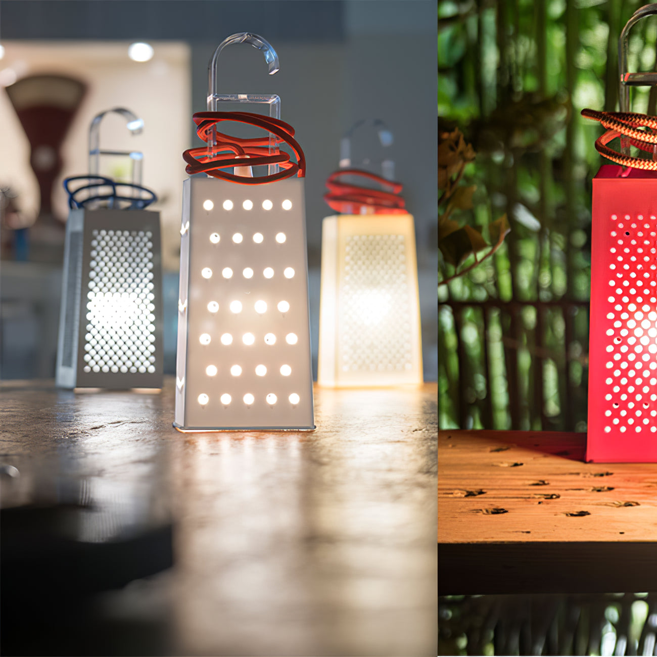 The lamps are made in Laurene, a material similar to rubber. The Battery collection is made up of rechargeable battery lamps, which can be carried indoors or outdoors and have different brightness settings. They are ideal for creating a poetic and romantic atmosphere, but also fun and playful thanks to the selection of bright colors.