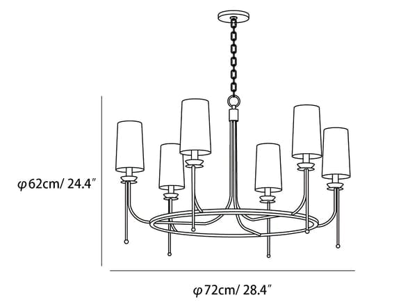 Size: 6 heads Dia 72cm x H 62cm / ∅ 28.4″ x H 24.4″