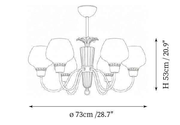 - 6-Lights Size: Dia 73cm x H 53cm / ∅ 29.5″ x H 20.9″
