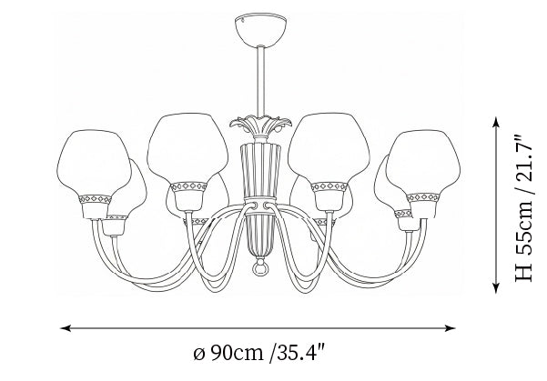 - 8-Lights Size: Dia 90cm x H 55cm / ∅ 35.4″ x H 21.7″
