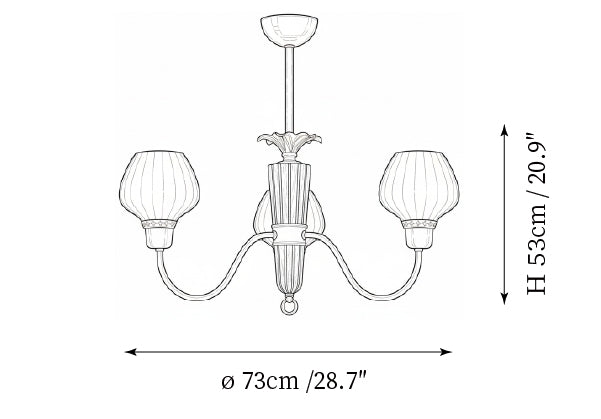 - 3-Lights Size: Dia 73cm x H 53cm / ∅ 28.7″ x H 20.9″