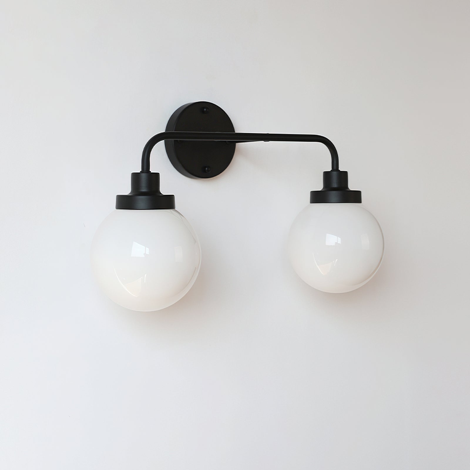 The Camdyn Wall Light by Mooijane blends modern elegance with subtle industrial charm. Crafted from durable iron and glass, its opal glass shade emits a soft, warm glow, creating a cozy, inviting atmosphere. The sleek black iron arm and wall mount make it a versatile addition to any interior.