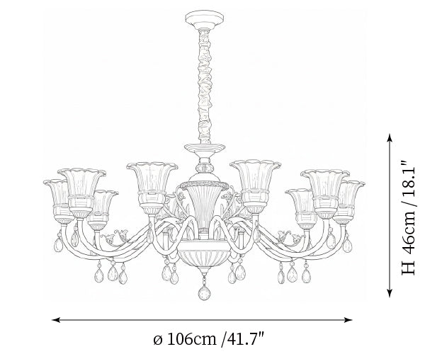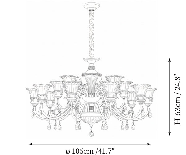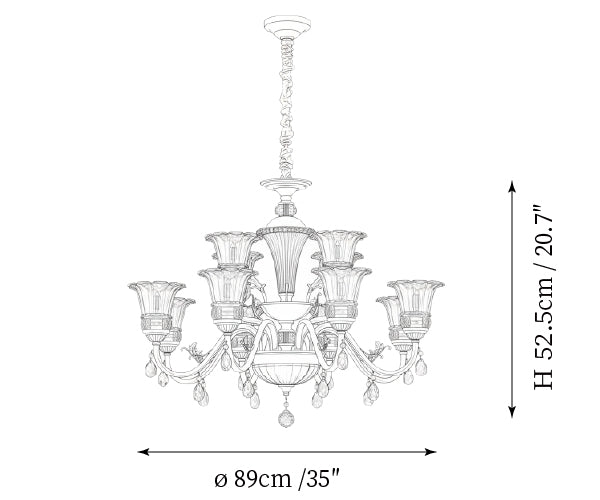 - 12-Lights Size: Dia 89cm x H 52.5cm / ∅ 35″ x H 20.7″