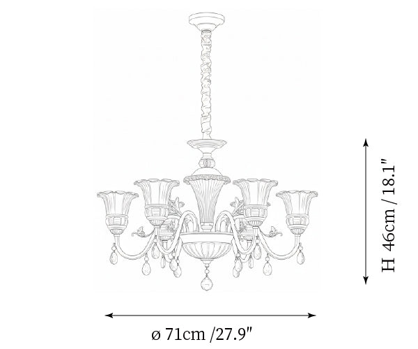 - 6-Lights Size: Dia 71cm x H 46cm / ∅ 27.9″ x H 18.1″