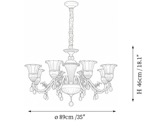 - 8-Lights Size: Dia 89cm x H 46cm / ∅ 35″ x H 18.1″