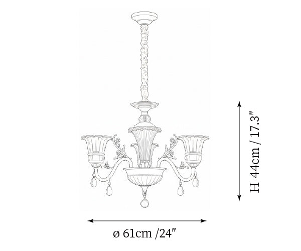 - 3-Lights Size: Dia 61cm x H 44cm / ∅ 24″ x H 17.3″