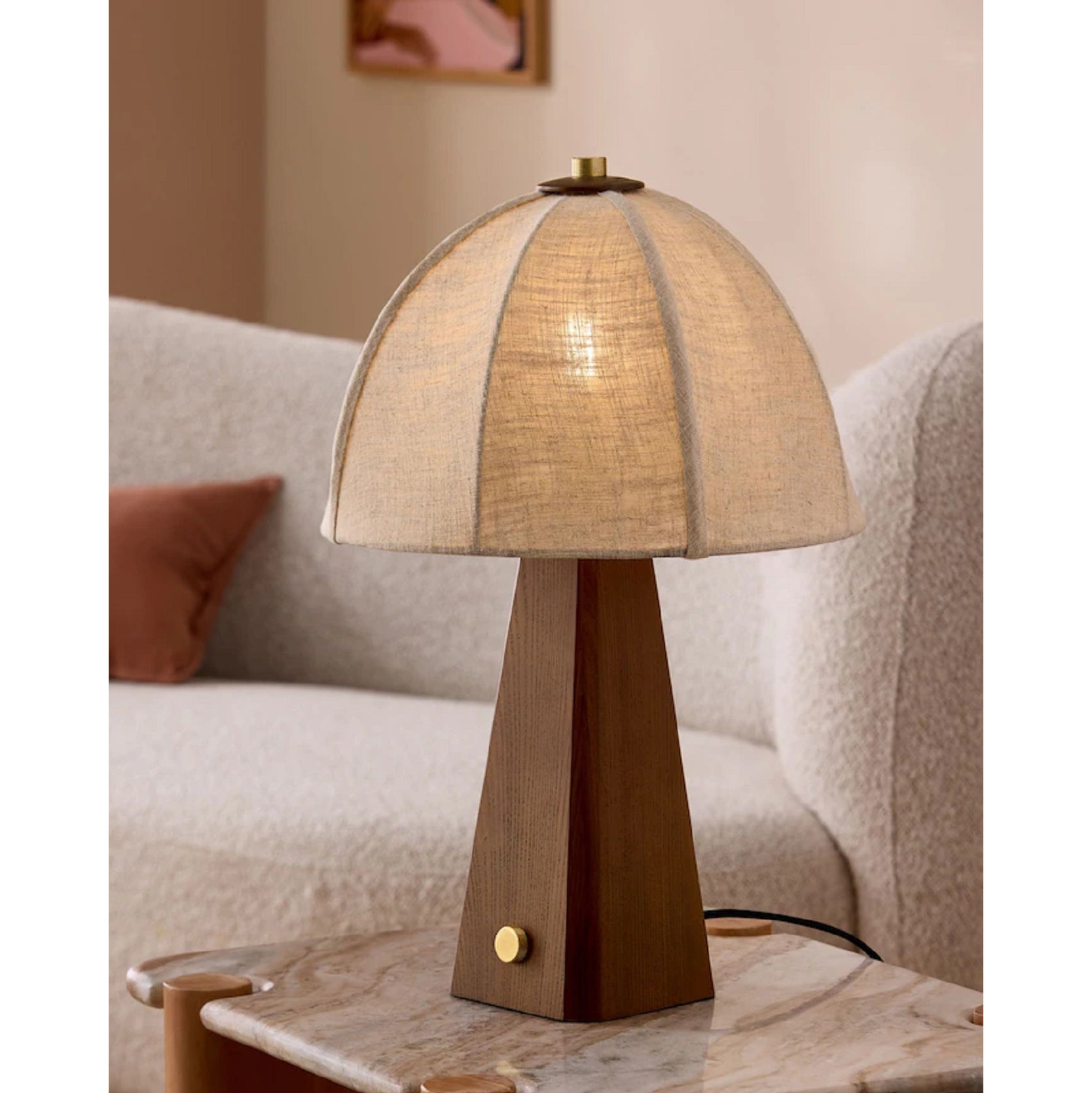 The Camino Table Lamp by Mooijane seamlessly blends natural textures with modern design. Its tapered dark wood base pairs with a woven fabric dome shade, casting a warm, inviting glow. Perfect for bedside tables, desks, or sideboards, this stylish lamp brings both elegance and cozy ambiance to any space.