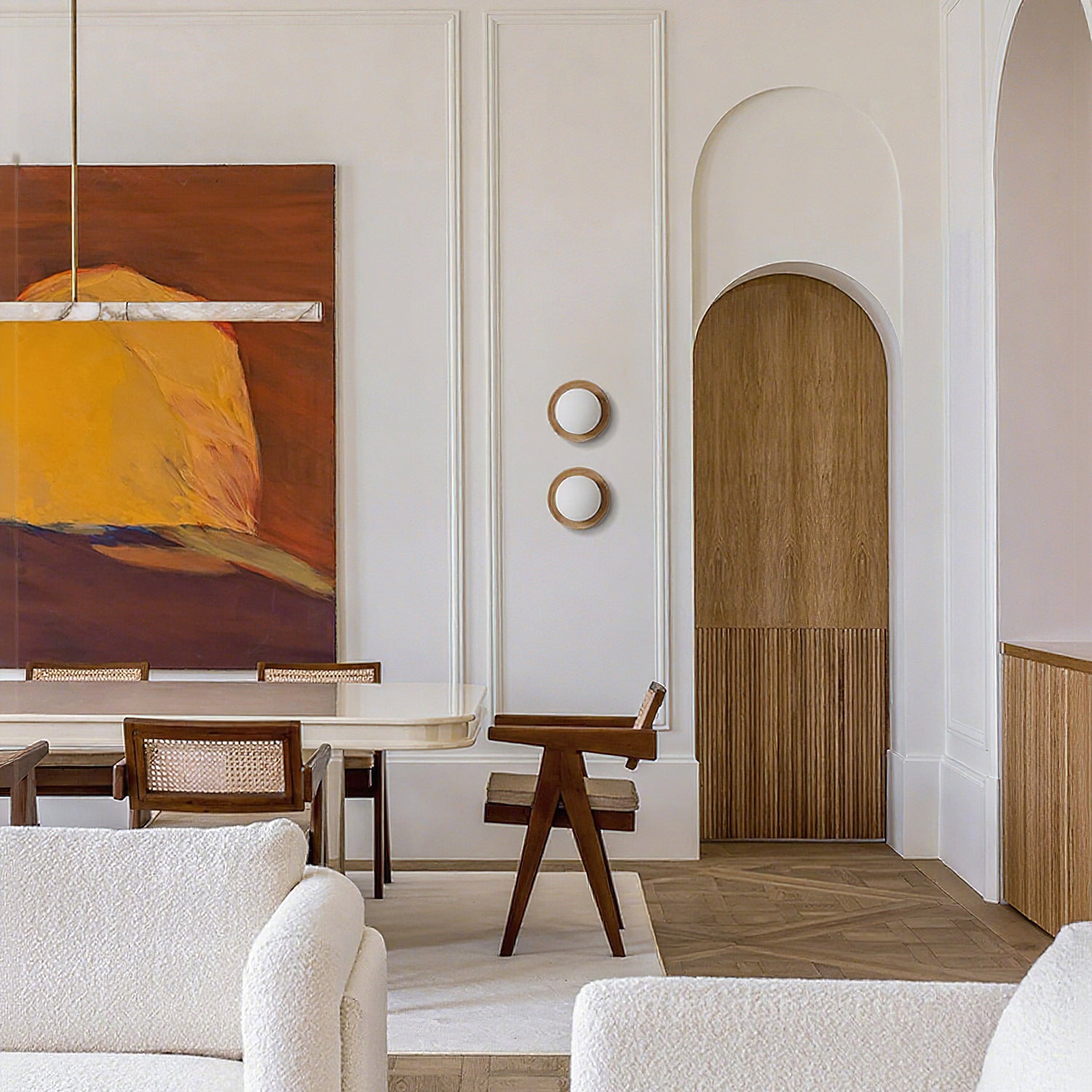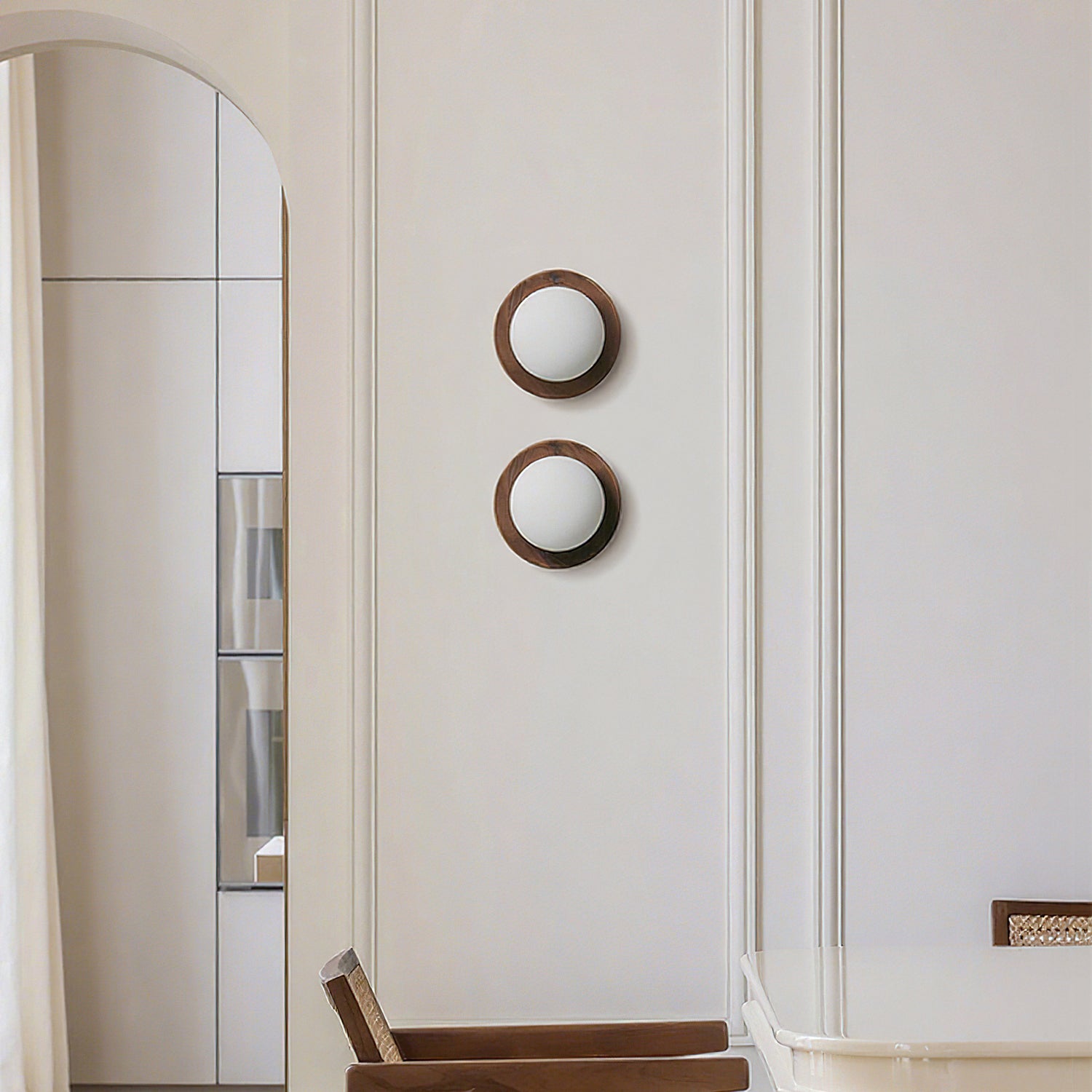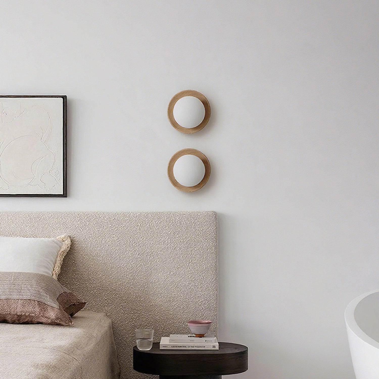 The Cara Tablet Wall Light by Mooijane blends natural elegance with modern design. Featuring a wooden base and a sleek glass shade, it creates a serene, understated aesthetic. Available in multiple finishes, it can be wall-mounted or recessed, adding a peaceful, nature-inspired touch to any space.