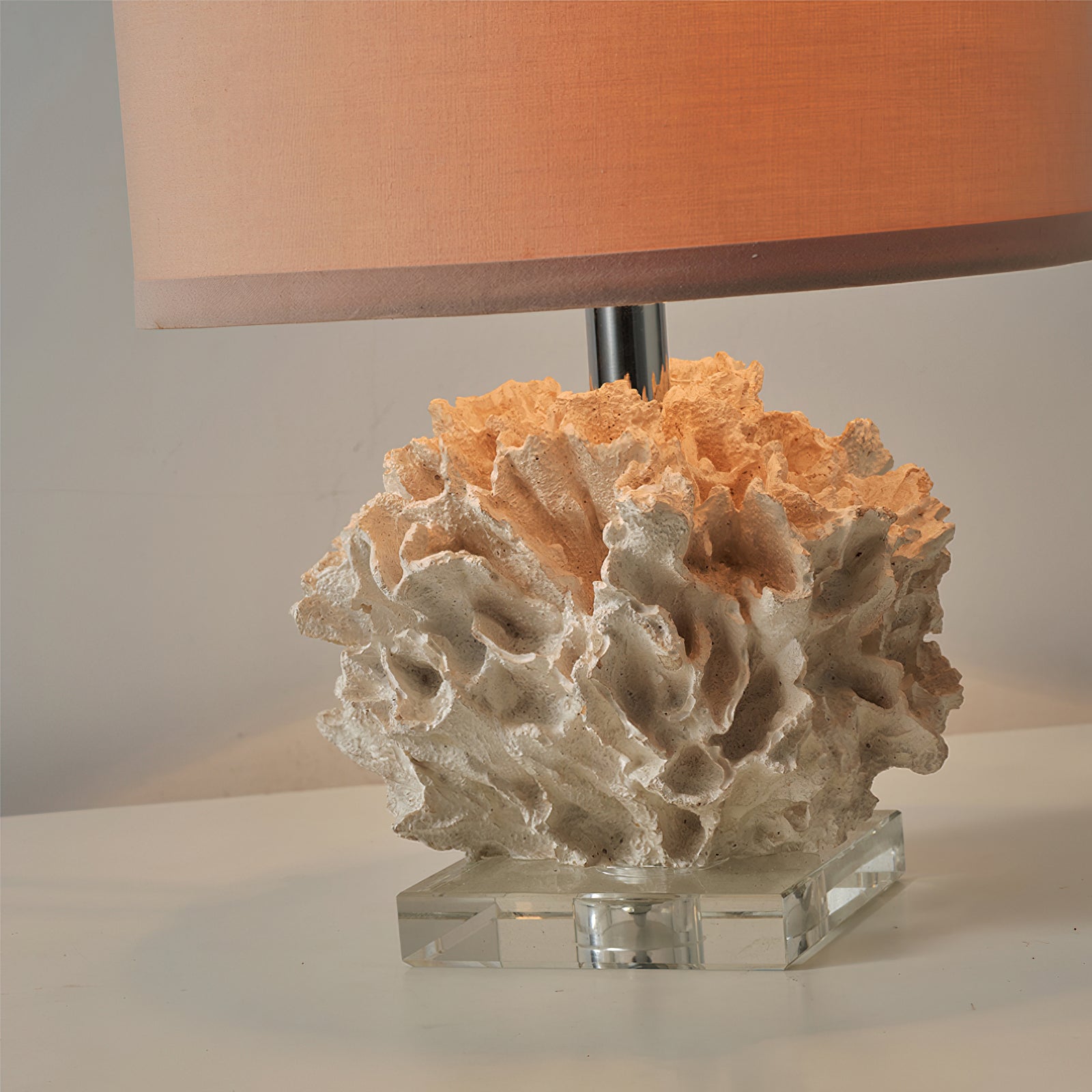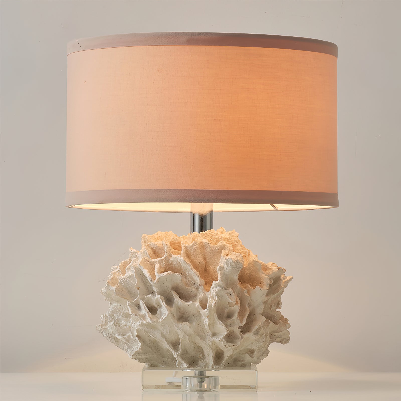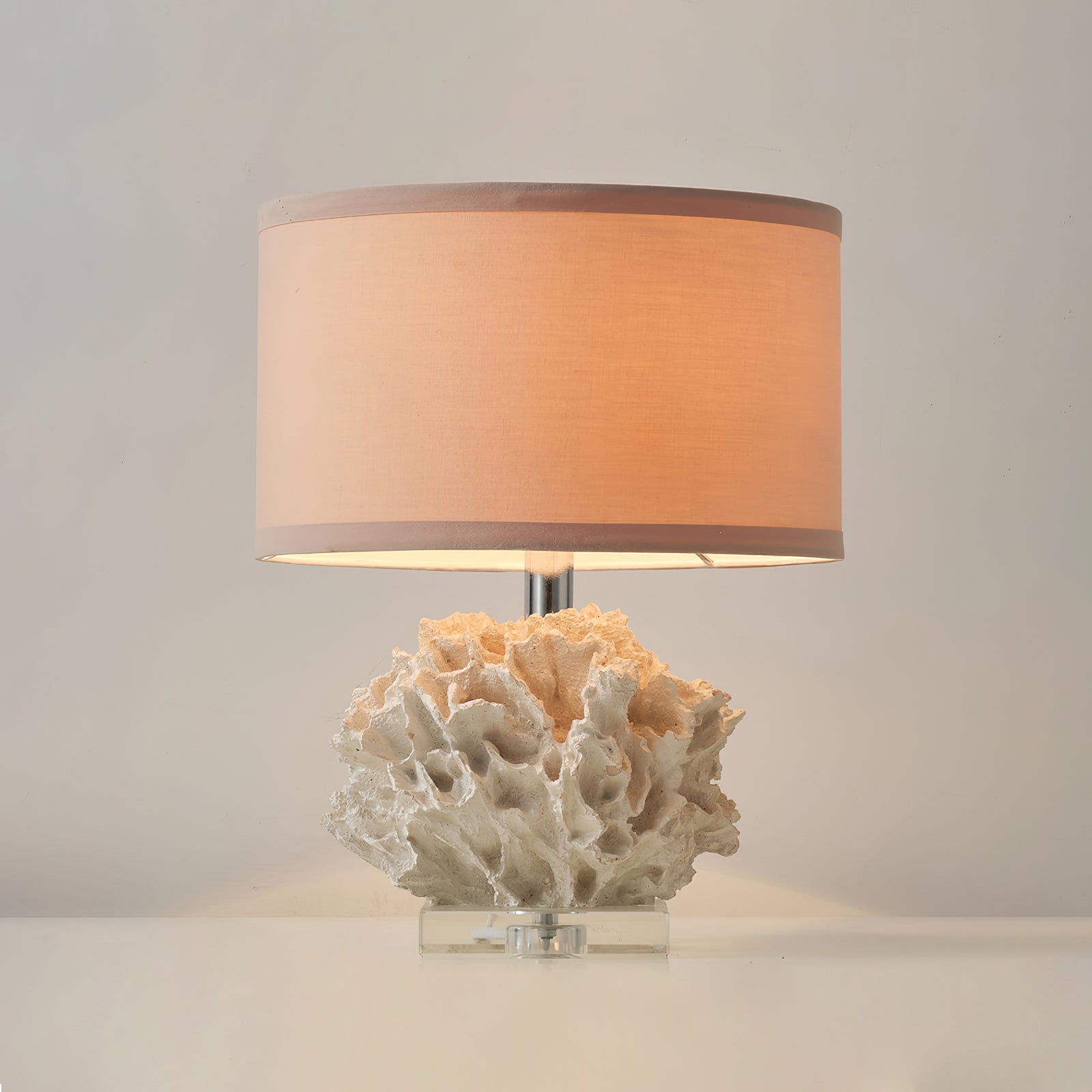Indulge in elegance with Mooijane's luxurious Caribbean Coral Table Lamp. Featuring a crystal base and natural linen shade, this compact table lamp effortlessly combines simplicity and natural beauty. Perfect for adding a touch of sophistication to any room.