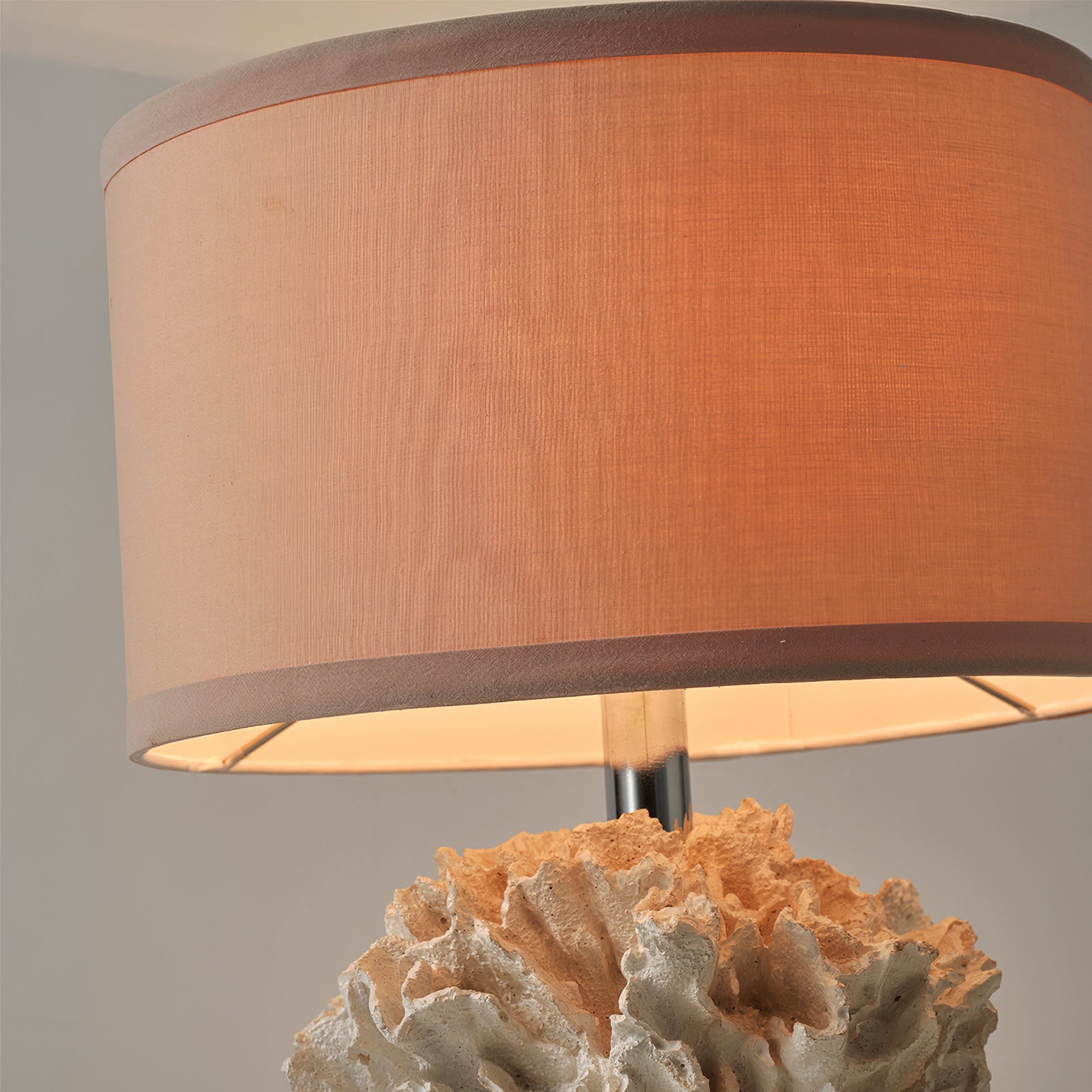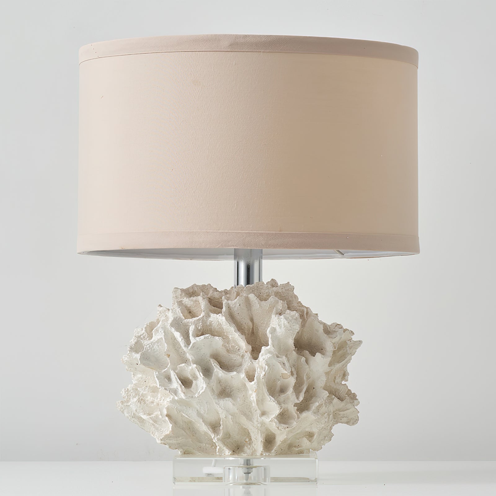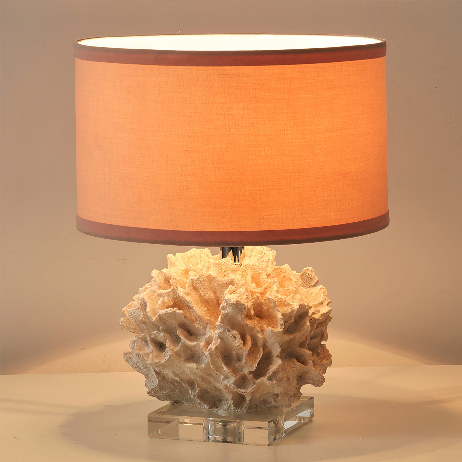 Indulge in elegance with Mooijane's luxurious Caribbean Coral Table Lamp. Featuring a crystal base and natural linen shade, this compact table lamp effortlessly combines simplicity and natural beauty. Perfect for adding a touch of sophistication to any room.